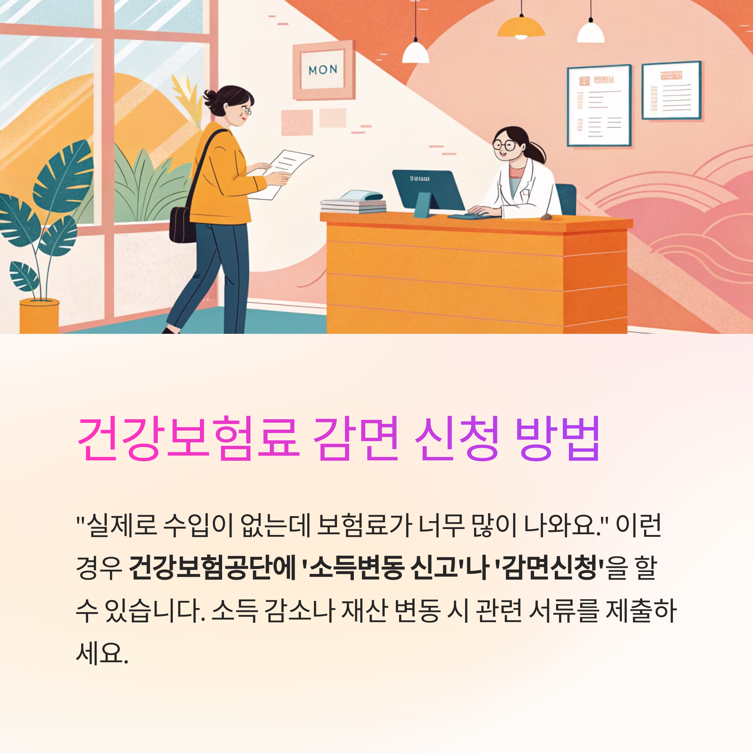 "실제로 수입이 없는데 보험료가 너무 많이 나와요. 줄일 수 있는 방법 없나요?"