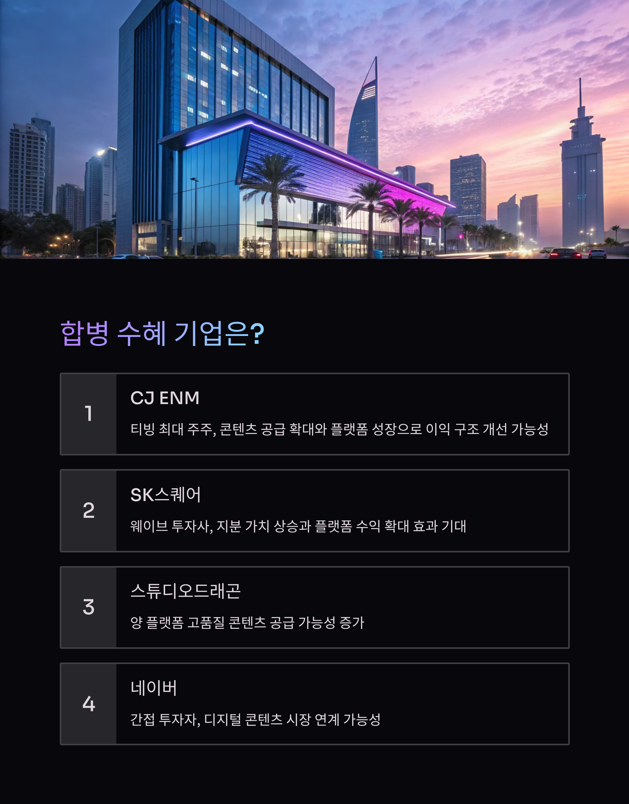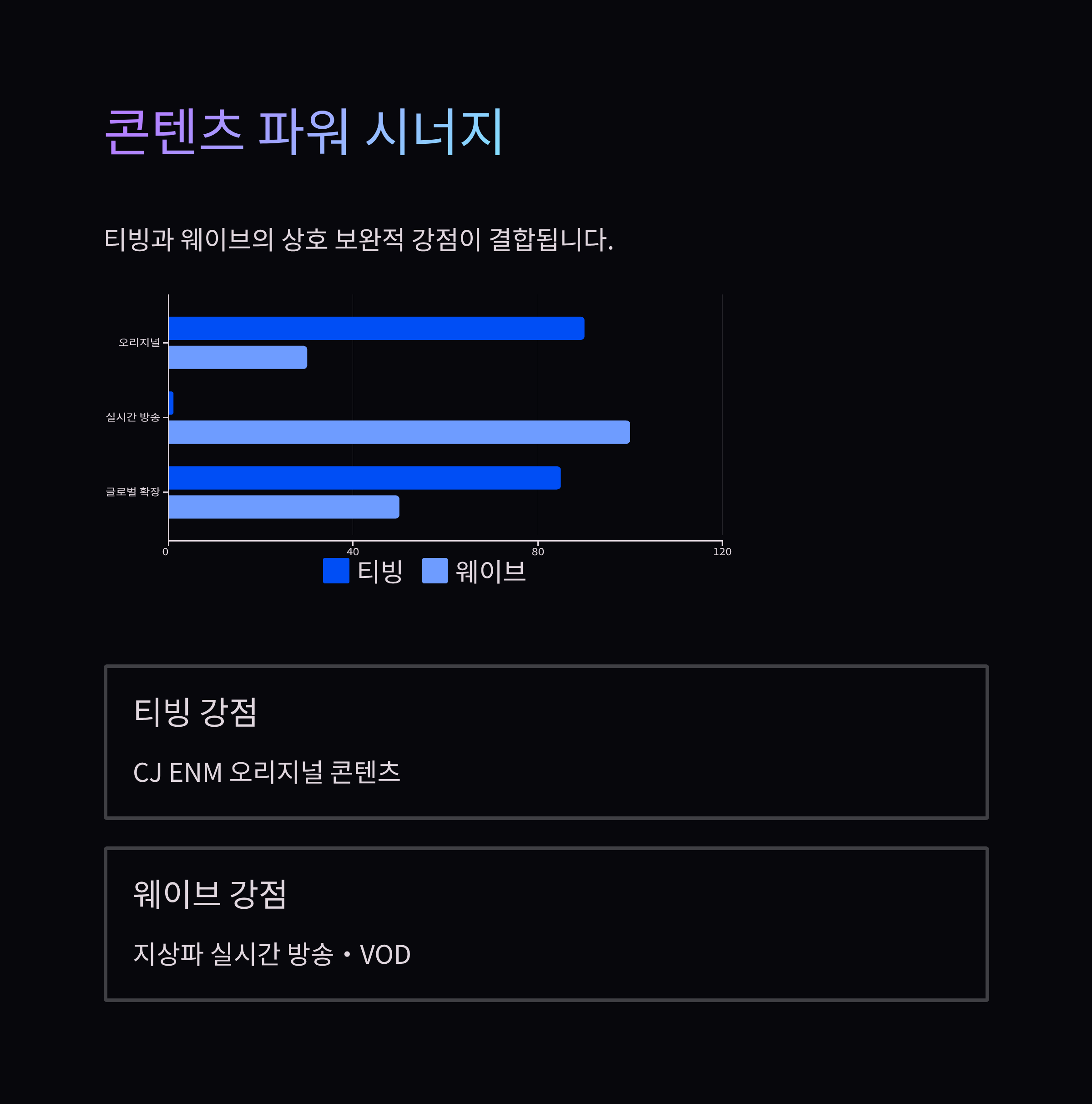 CJ ENM은 이번 합병을 통해 티빙 중심의 미디어 사업에서 드라마, 예능, 영화 등 다양한 콘텐츠 IP를 활용한 성장 전략을 더 강화할 수 있습니다.
