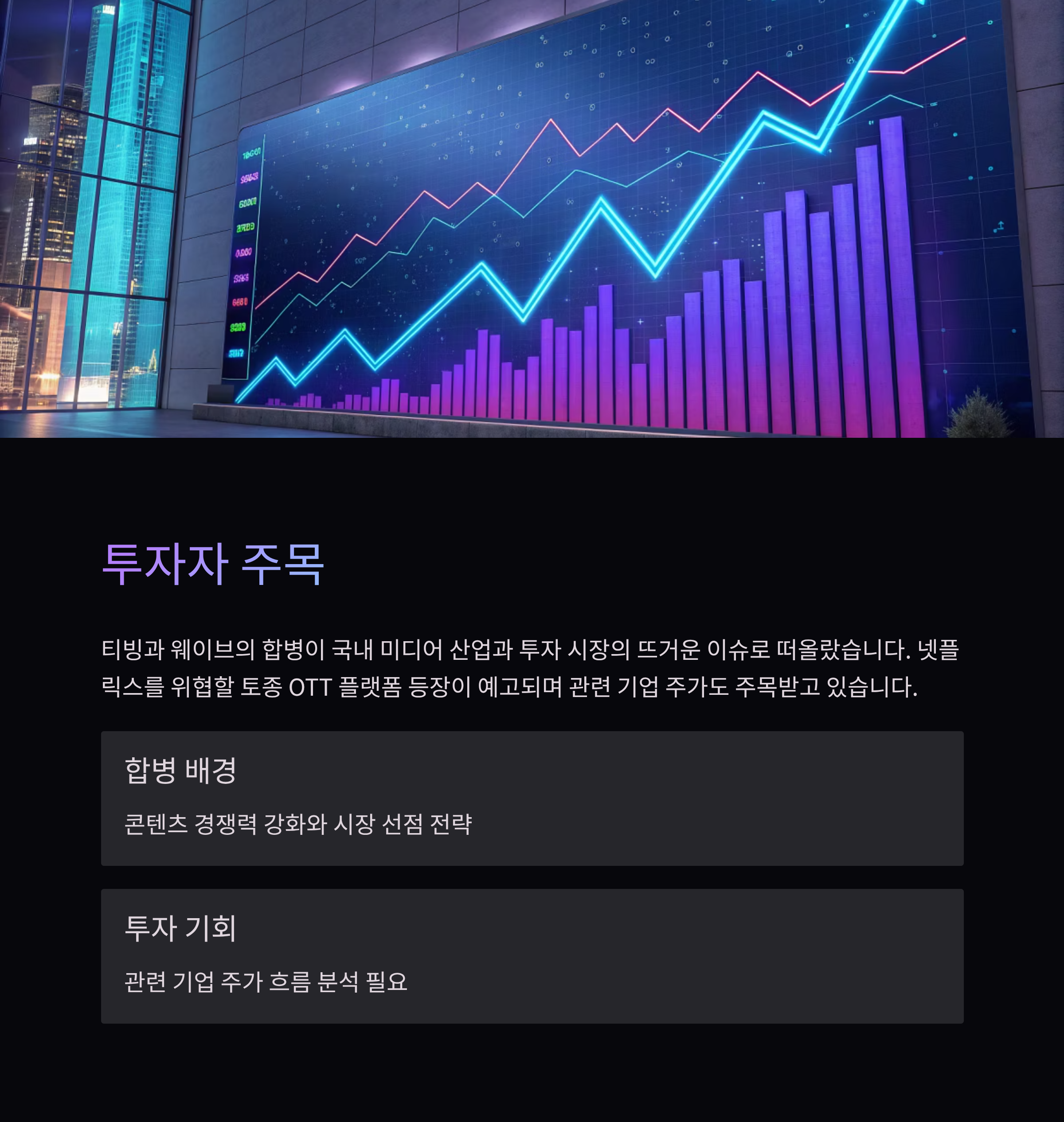 티빙과 웨이브의 합병 이슈가 국내 미디어 산업은 물론, 투자 시장에서도 뜨거운 감자로 떠오르고 있습니다. 넷플릭스를 위협할 수 있는 강력한 토종 OTT 플랫폼의 등장이 예고되면서 관련 기업들의 주가 흐름도 주목받고 있는데요. 이번 글에서는 티빙-웨이브 합병의 배경과 진행 상황부터, 투자 시 고려할 수 있는 전략까지 알기 쉽게 풀어보겠습니다.