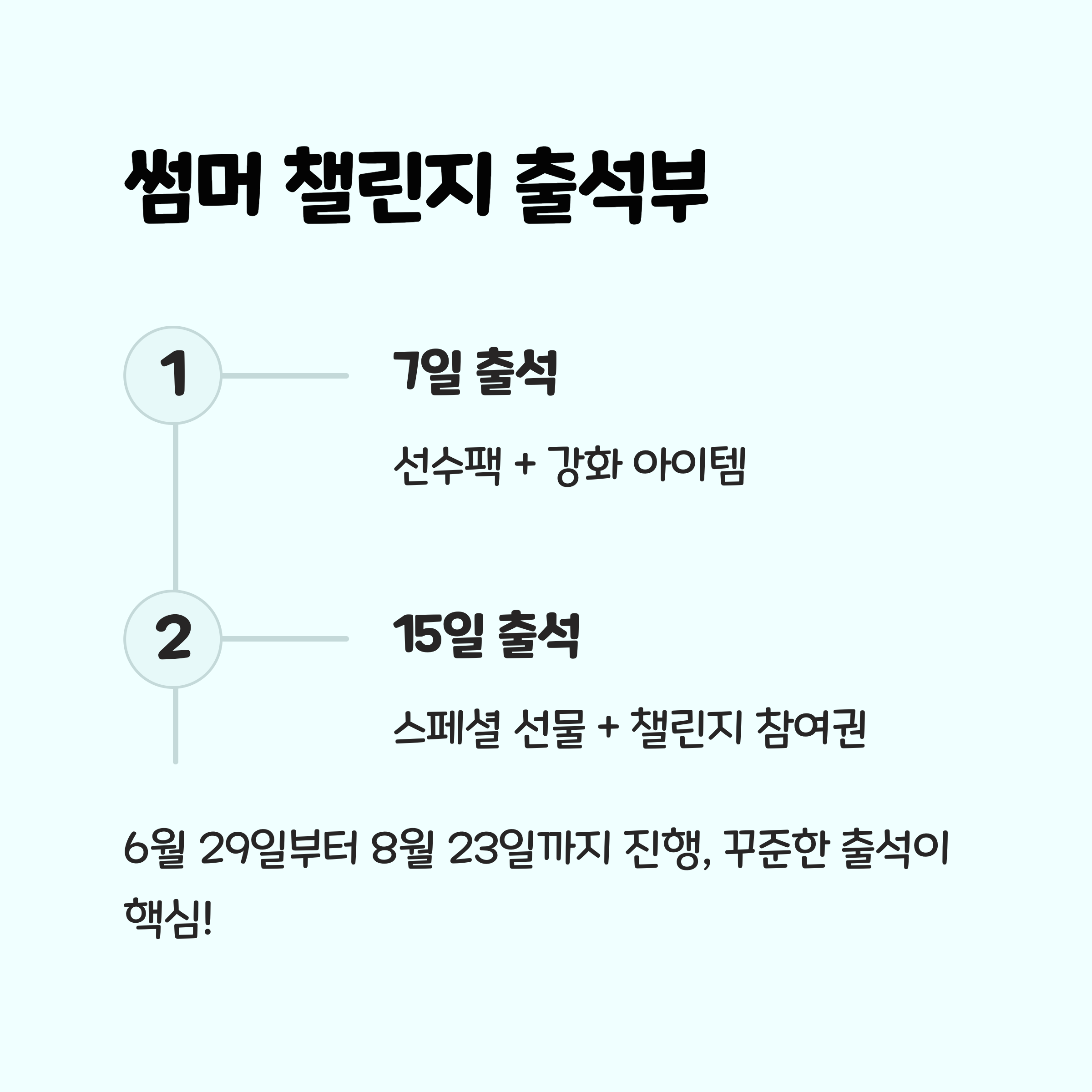 썸머 챌린지 출석부는 6월 29일부터 8월 23일까지 약 두 달간