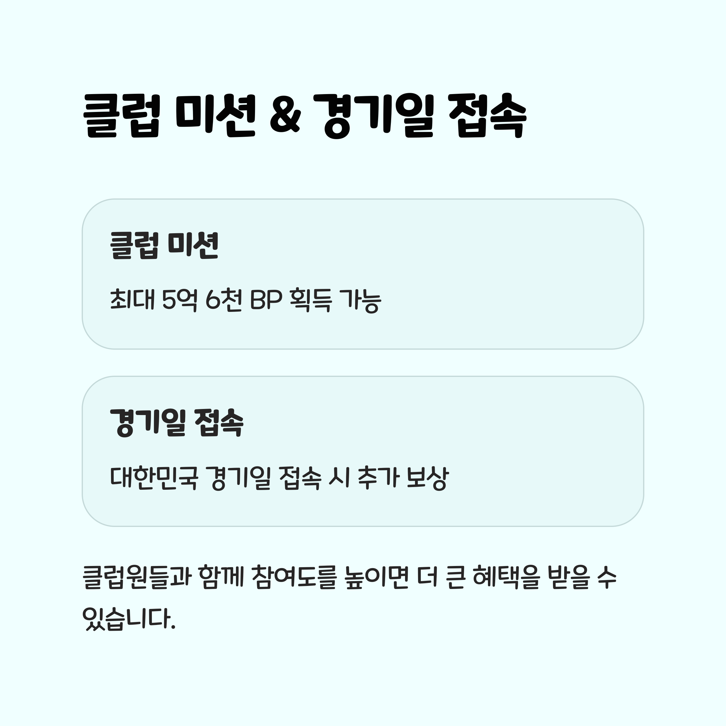 획득 가능하며, 대한민국 경기일에 접속 시 추가 보상이
