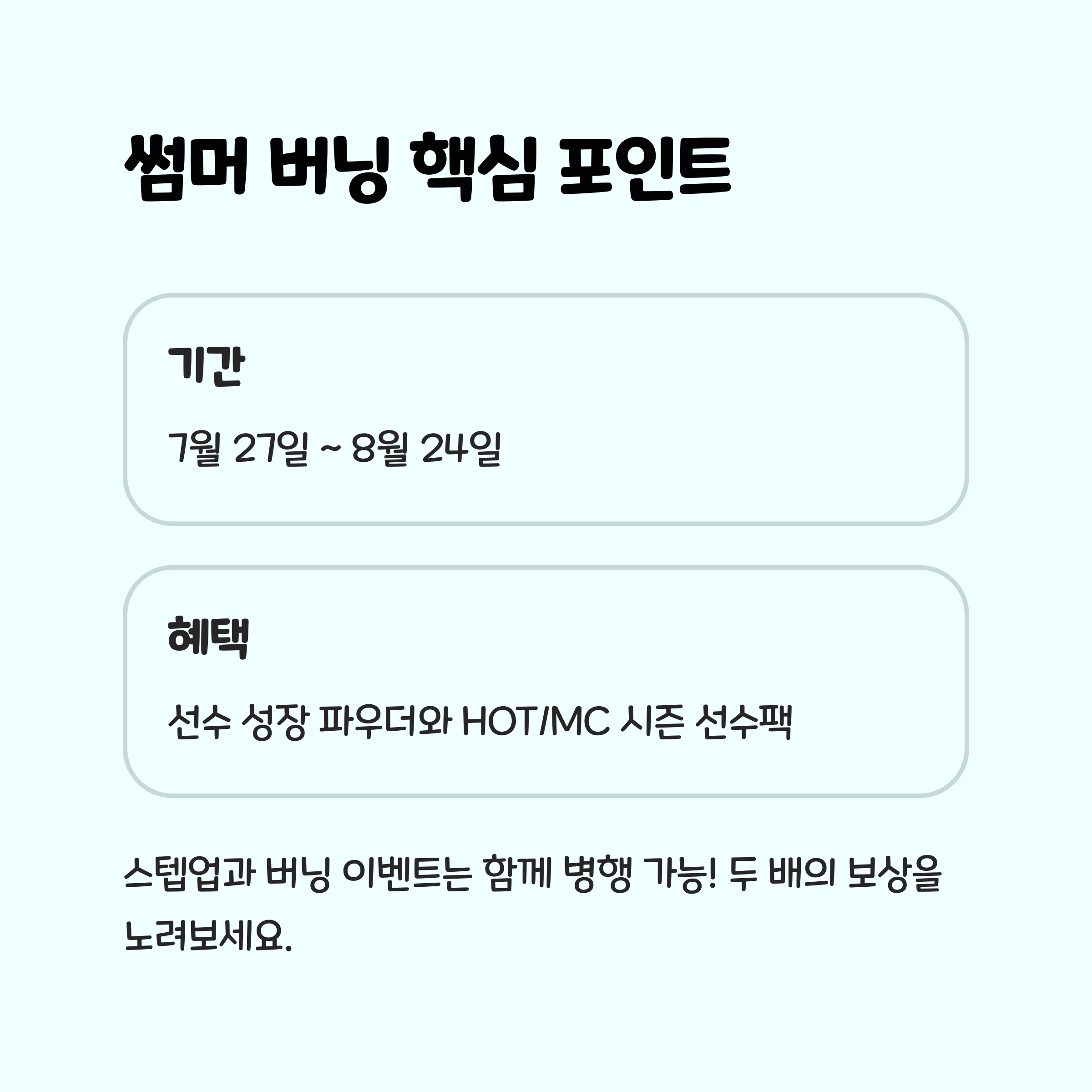 특히 썸머 버닝은 퀘스트를 수행하며 선수 성장 재료와