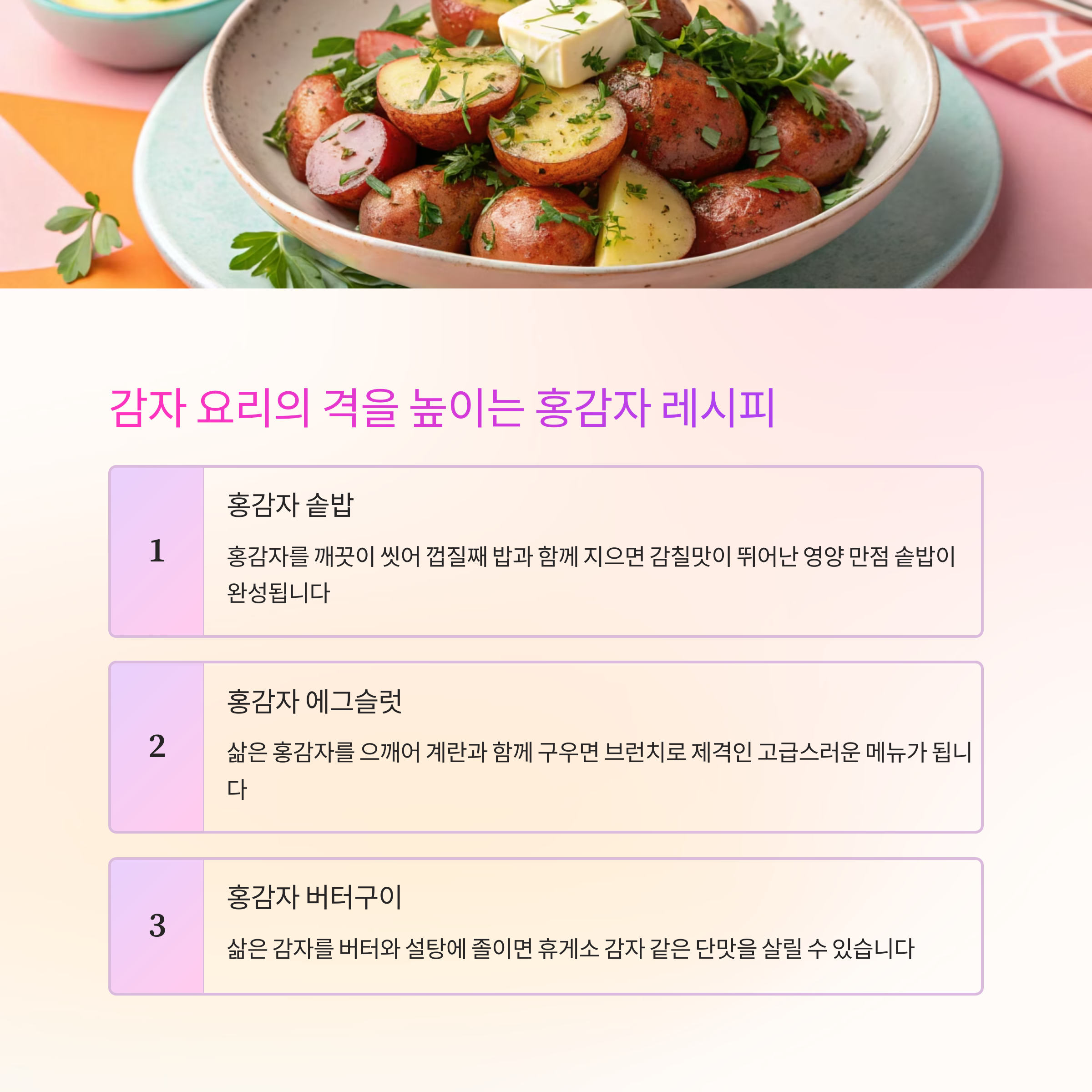 홍감자는 단순한 감자 요리에 고급스러움을 더해줍니다.