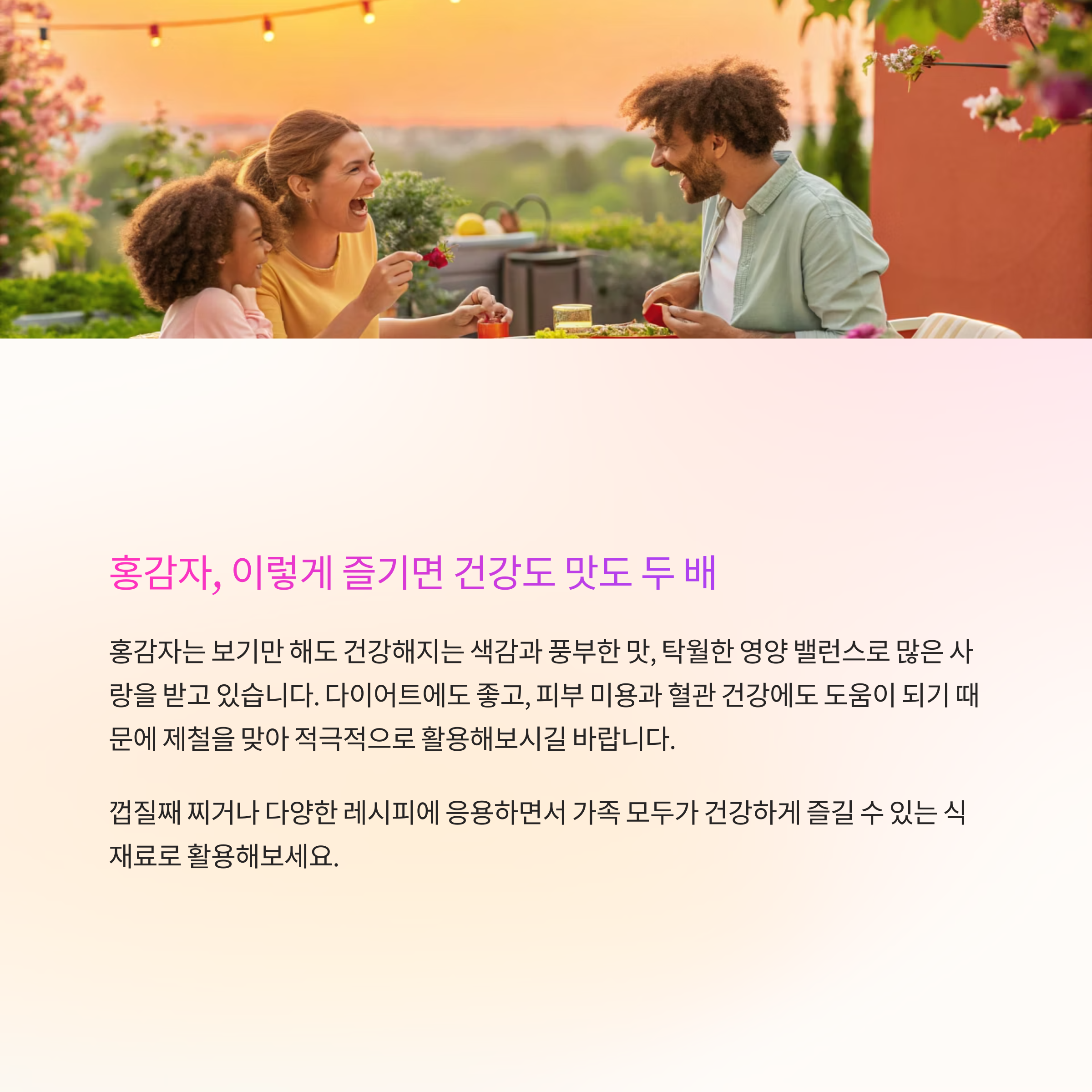 이 시기의 홍감자는 당도와 영양이 최고조에 달합니다.