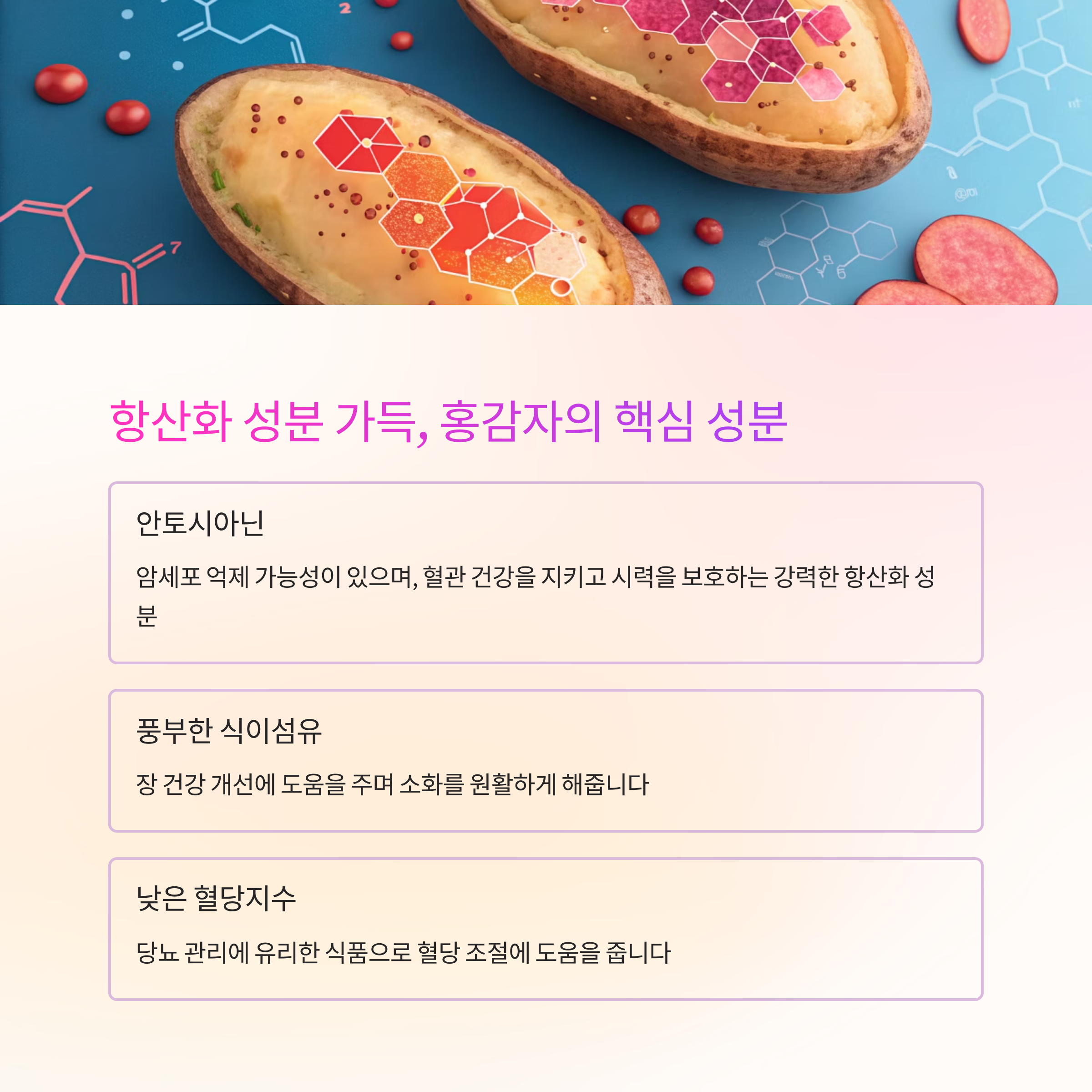 홍감자의 가장 큰 장점은 바로 강력한 항산화 성분인 안토시아닌입니다.