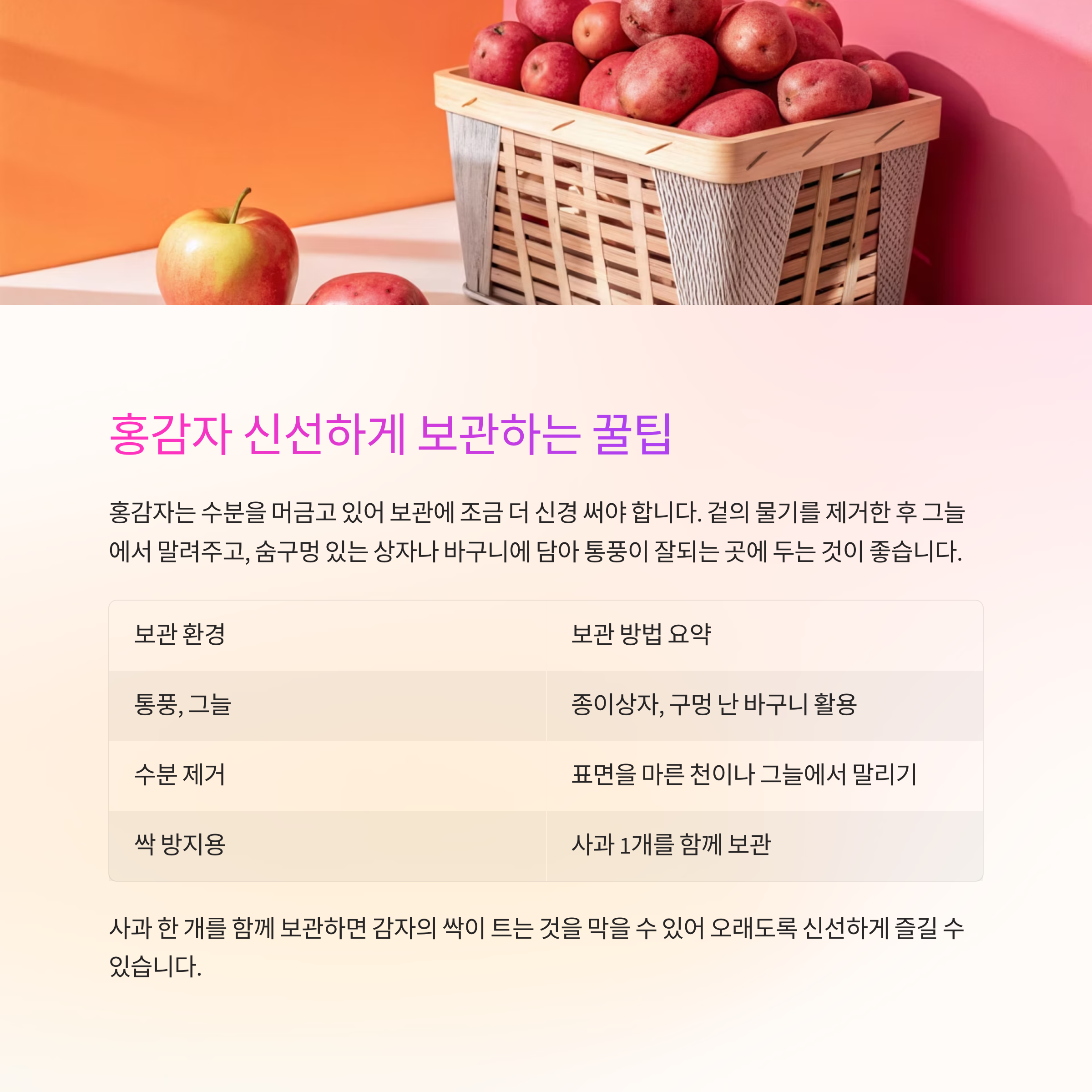홍감자는 수분을 머금고 있어 보관에 조금 더 신경 써야 합니다.