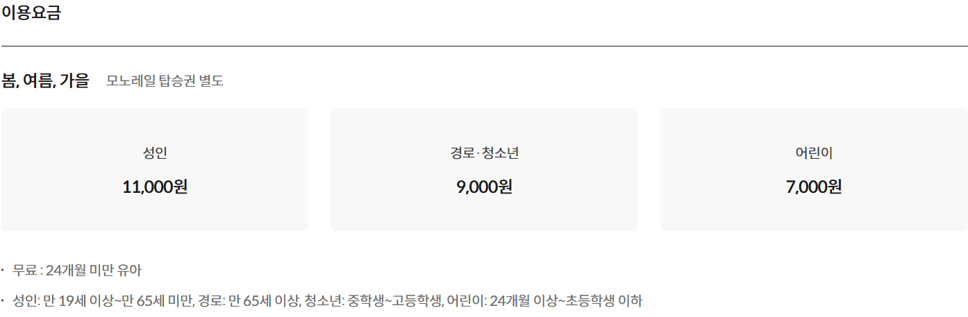 - 운영 시간: 봄~가을 (3~11월) 오전 9시 ~ 오후 5시 30분