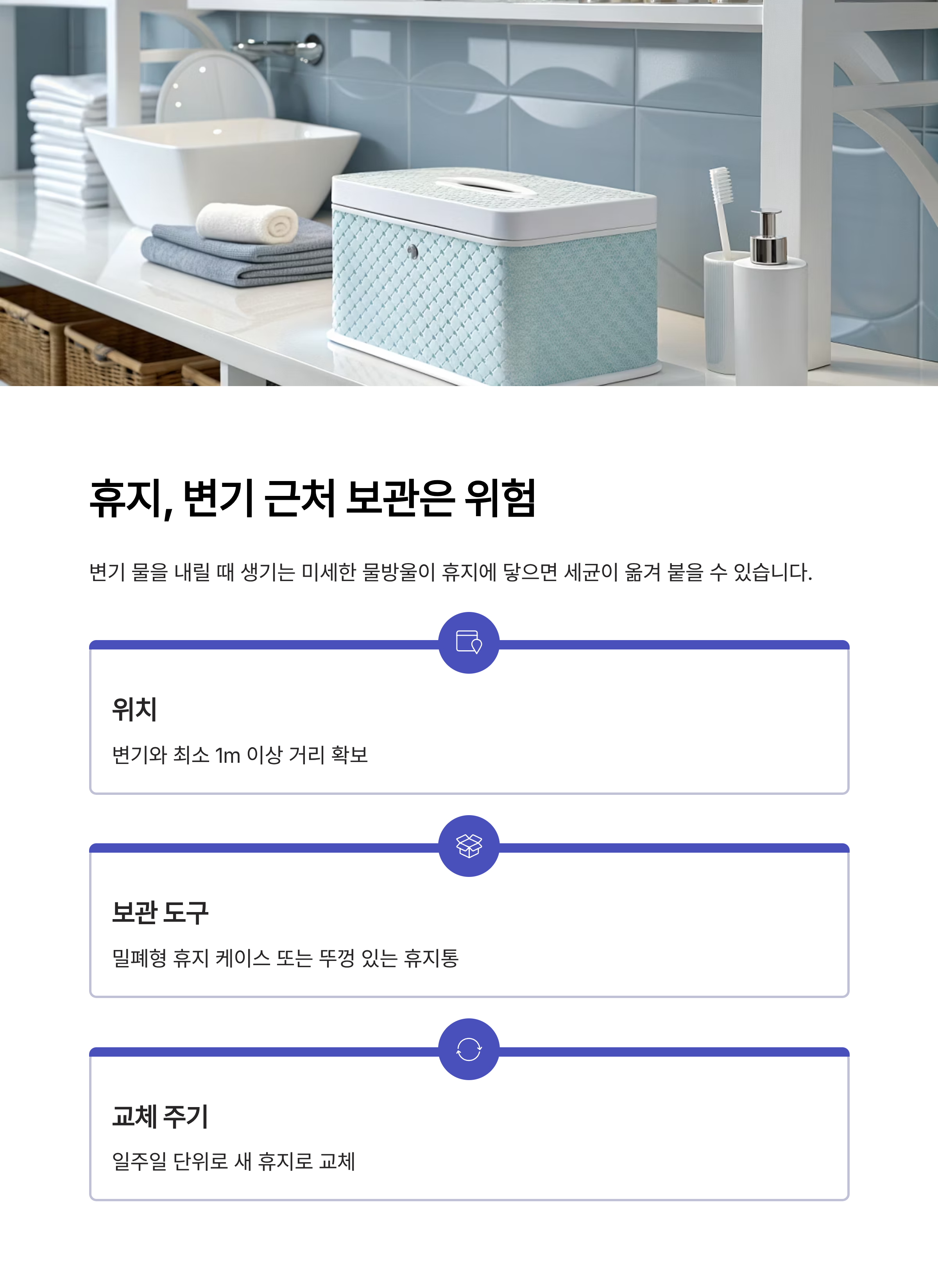 | 보관 도구 | 밀폐형 휴지 케이스 또는 뚜껑 있는 휴지통 |