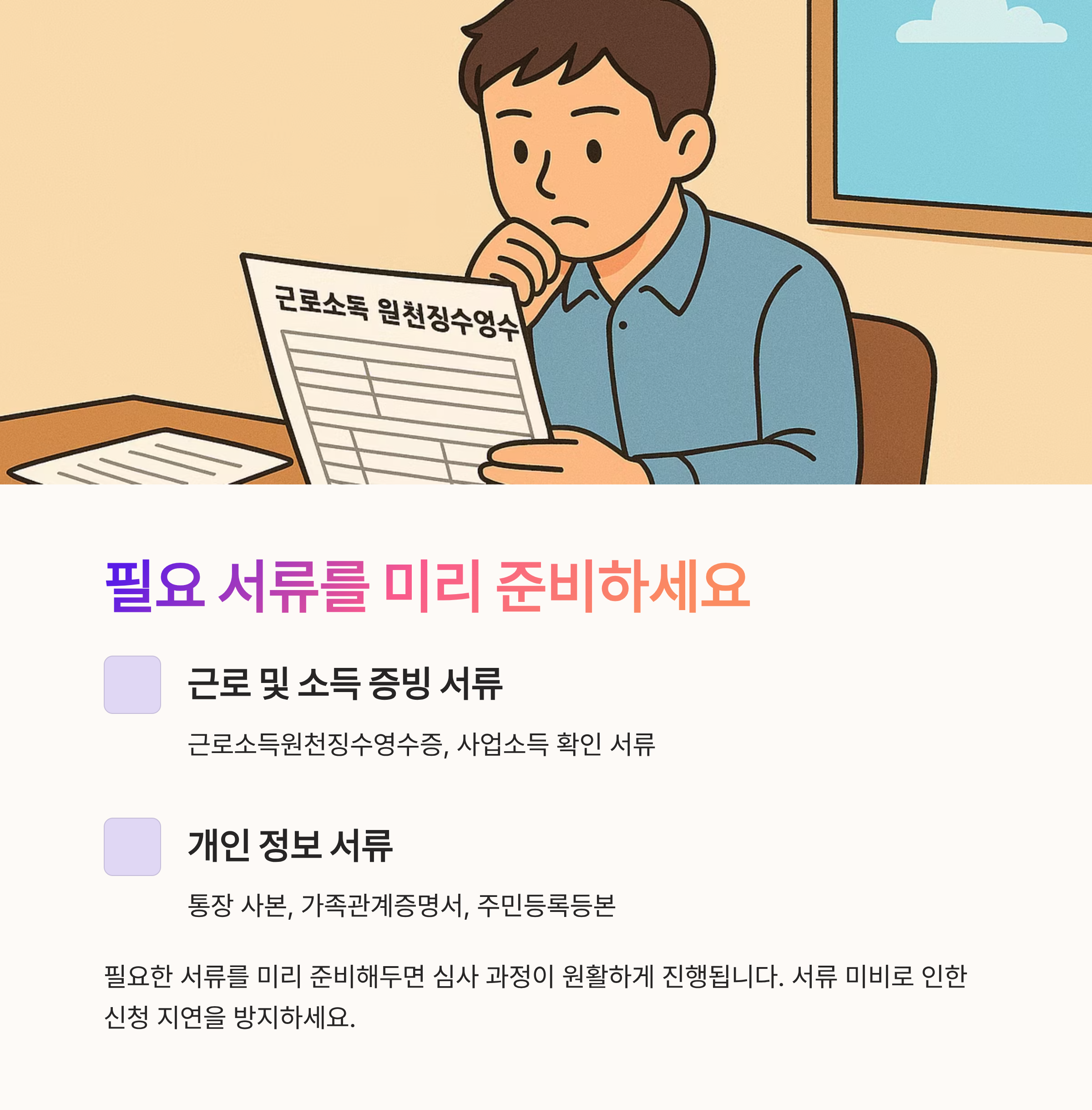 신청 과정에서 본인의 근로 및 소득을 증빙할 수 있는 서류가 요구됩니다.