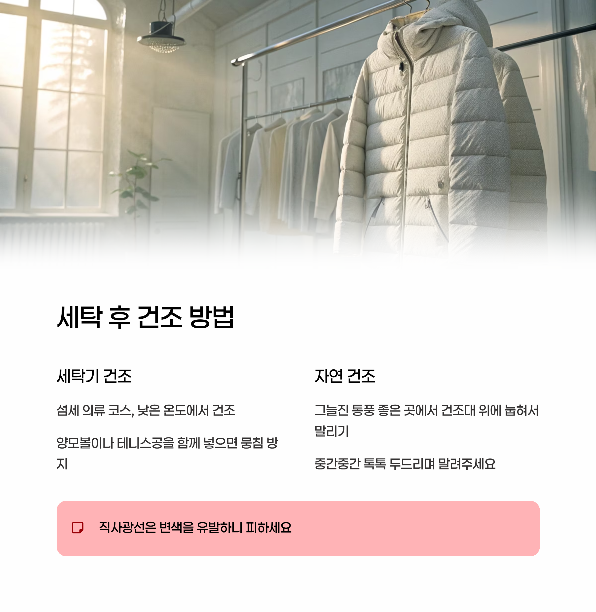 세탁 전부터 보관까지, 뽀얀 흰패딩 유지하는 법 알려드려요