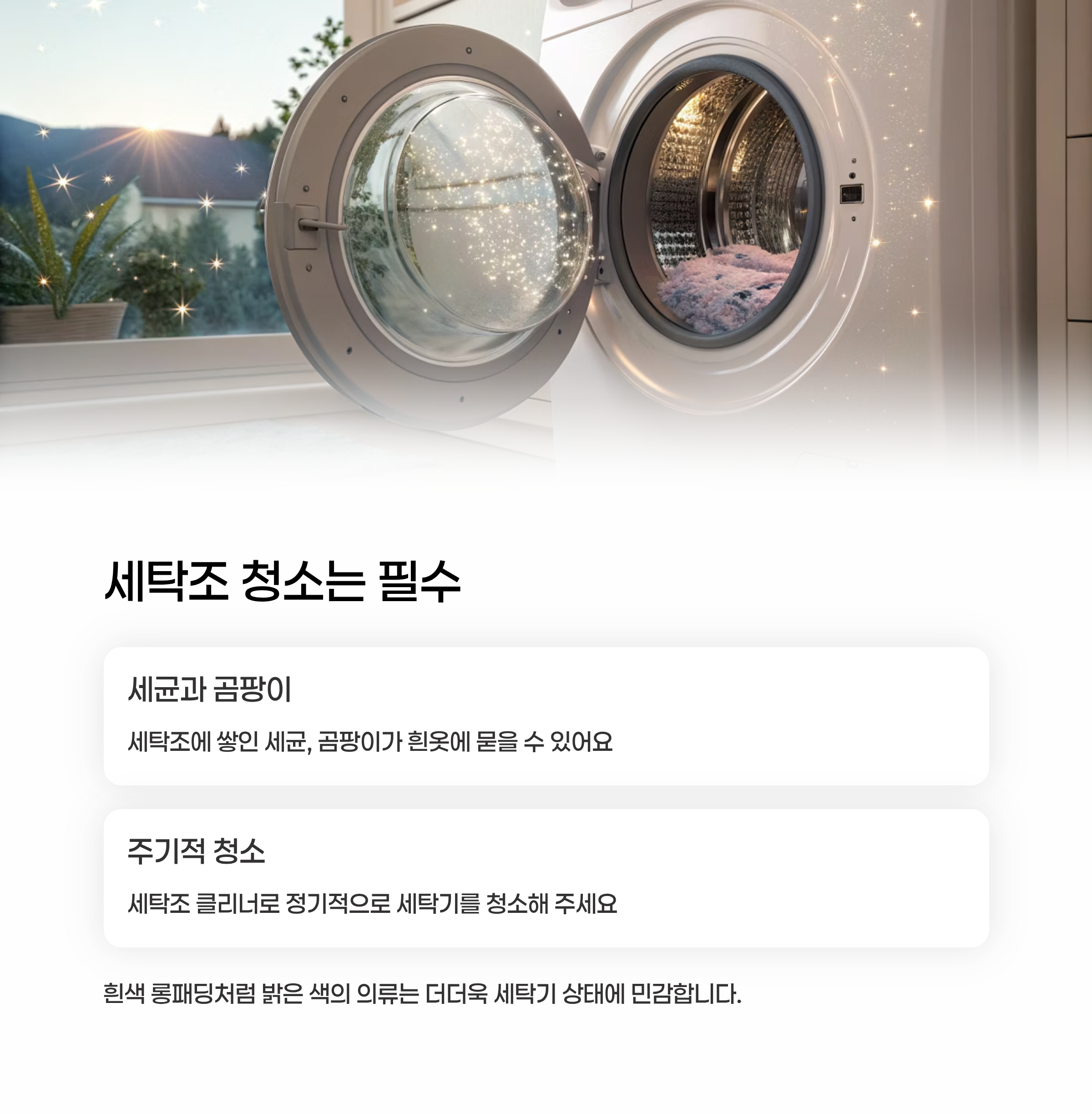 아무리 세탁을 잘해도 세탁기 안이 더럽다면 소용없겠죠?