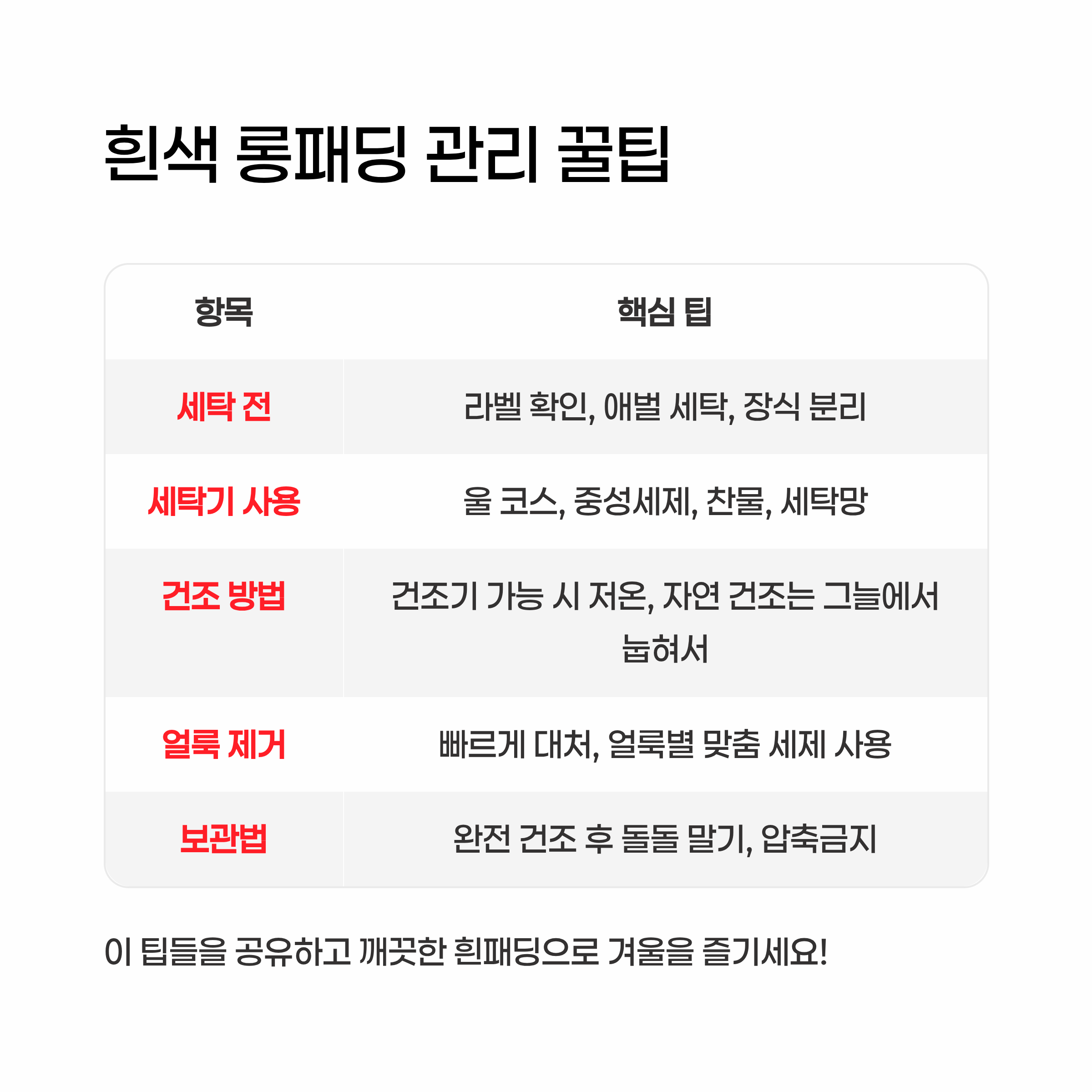 흰색 롱패딩 관리 꿀팁 요약