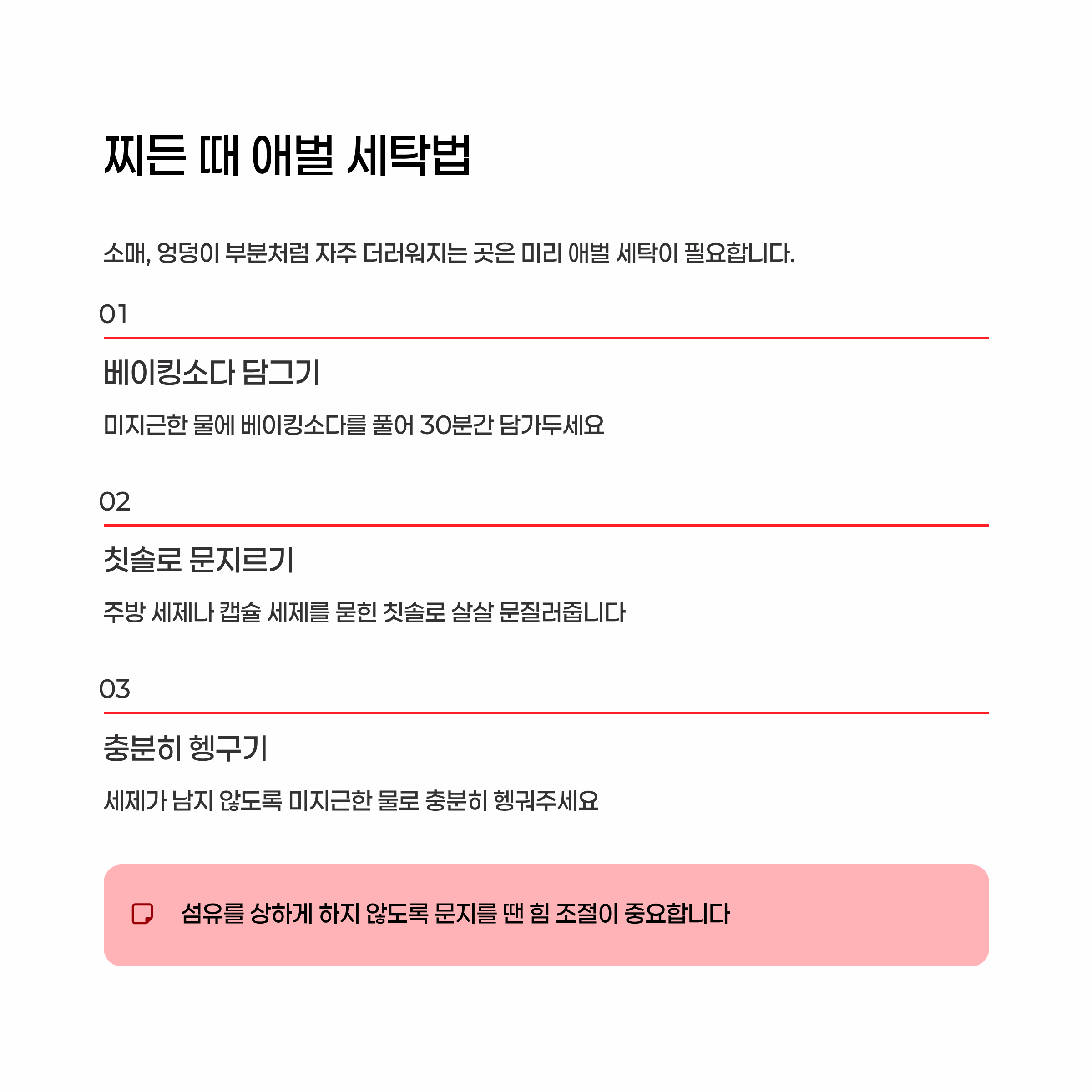 - 오염 부위는 미리 애벌 세탁