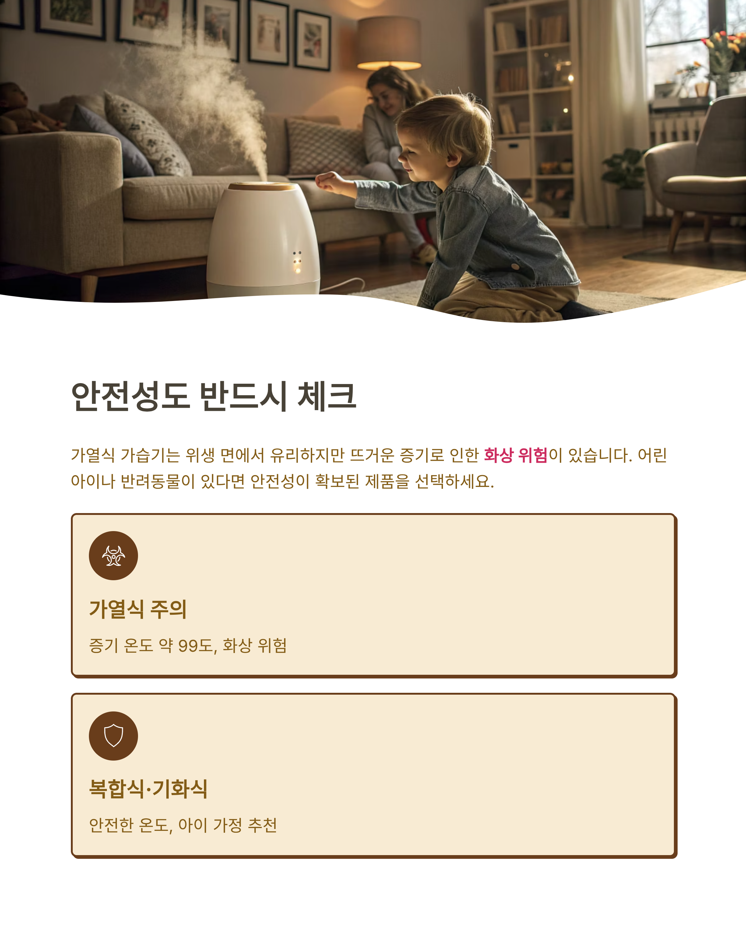 복합식이나 기화식 같은 안전성이 확보된 제품을 고르는 것이 좋습니다.