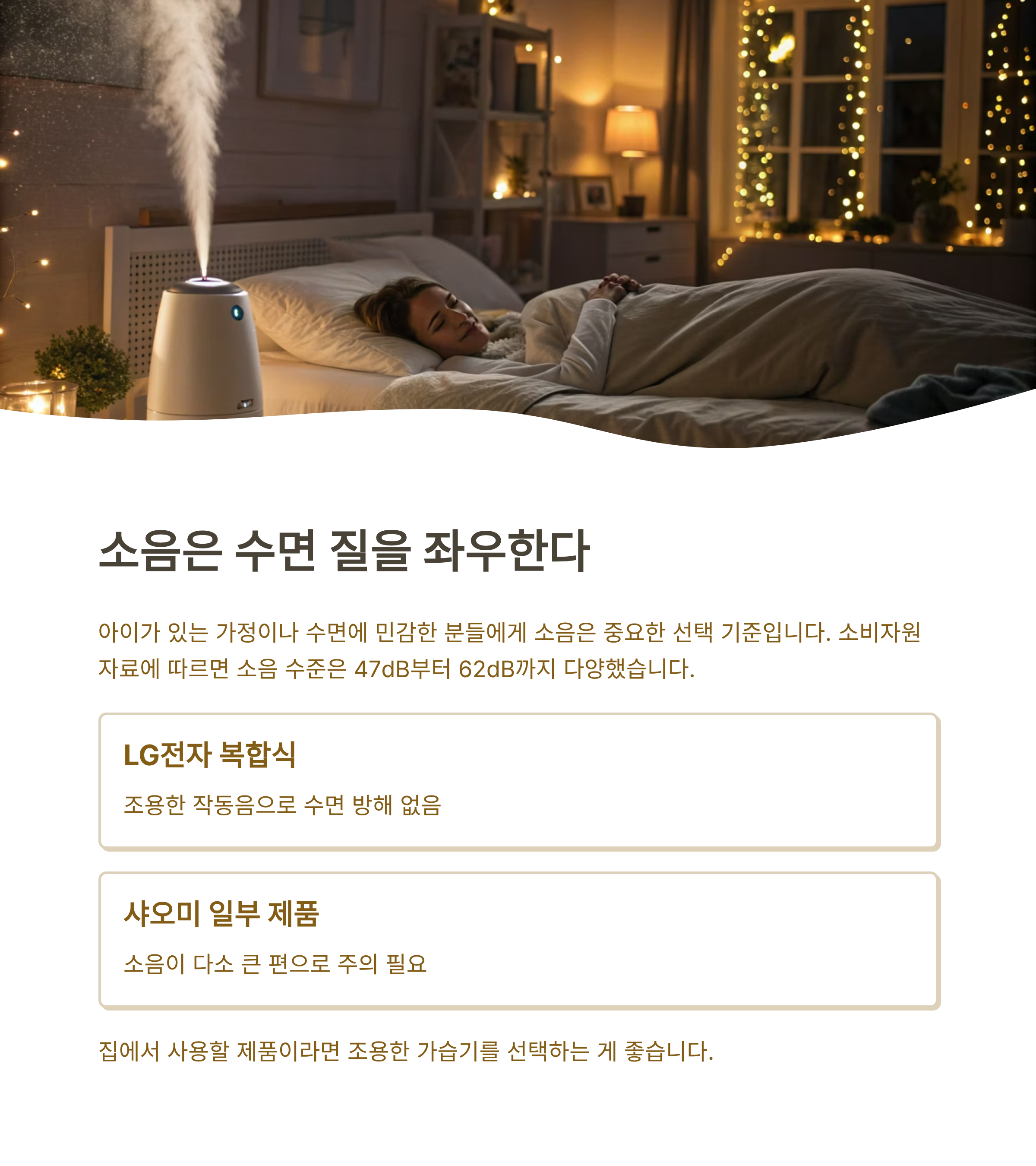 집에서 사용할 제품이라면 조용한 가습기를 선택하는 게 좋아요.