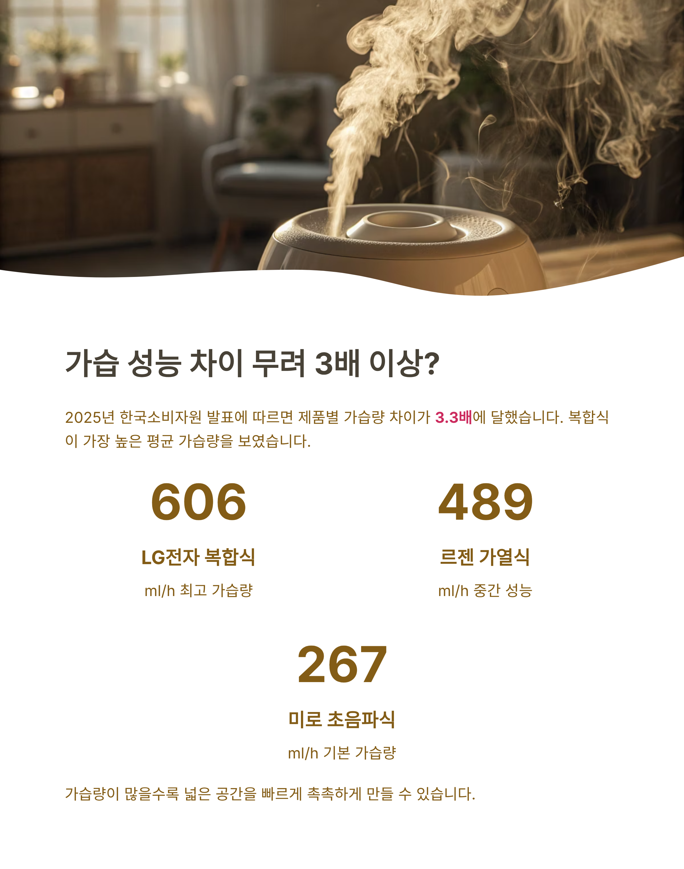 실제로 2025년 한국소비자원이 발표한 자료에 따르면, 제품별 가습량 차이가 3.3배에 달했답니다.