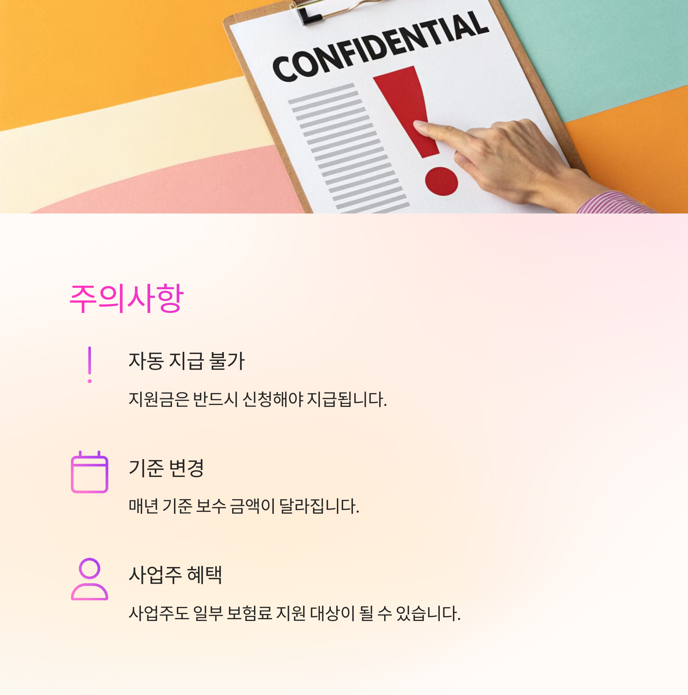 - 사업주도 일부 보험료 지원 대상이 될 수 있으니 함께 조회해 보시는 것이 좋습니다.