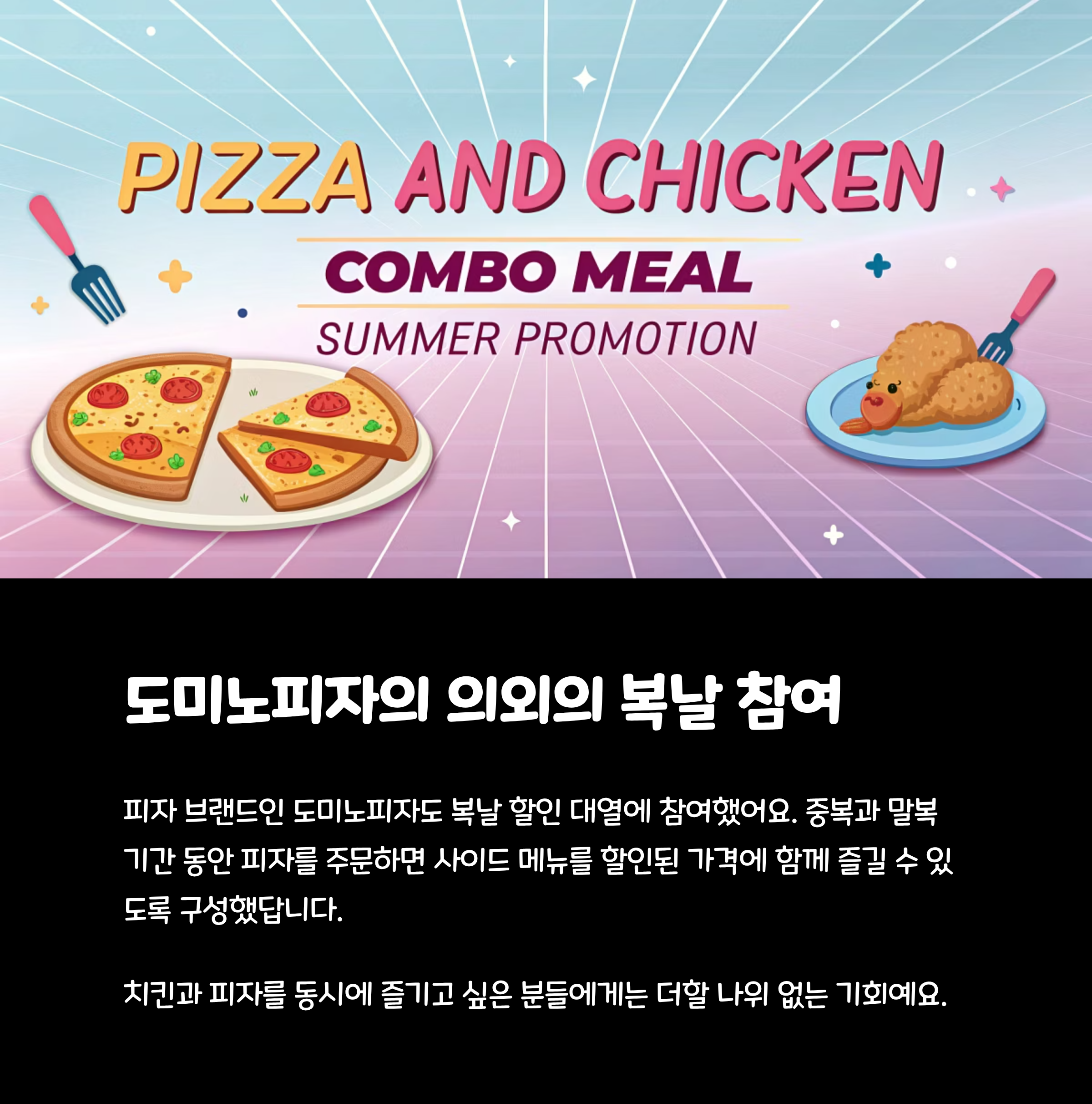 피자 브랜드인 도미노피자도 복날 할인 대열에 참여했어요.
