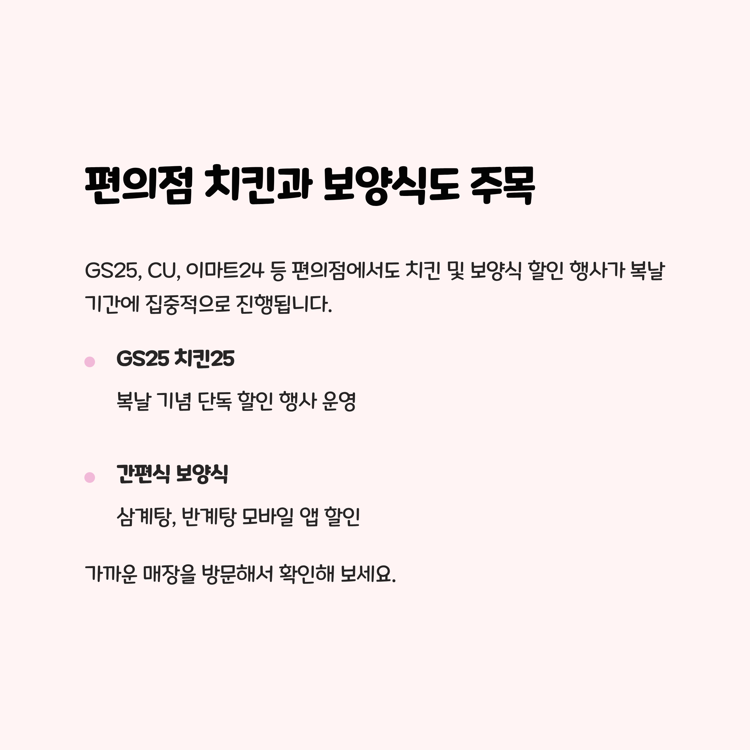 복날 기간에 집중적으로 진행됩니다. 특히 GS25의 치킨25는