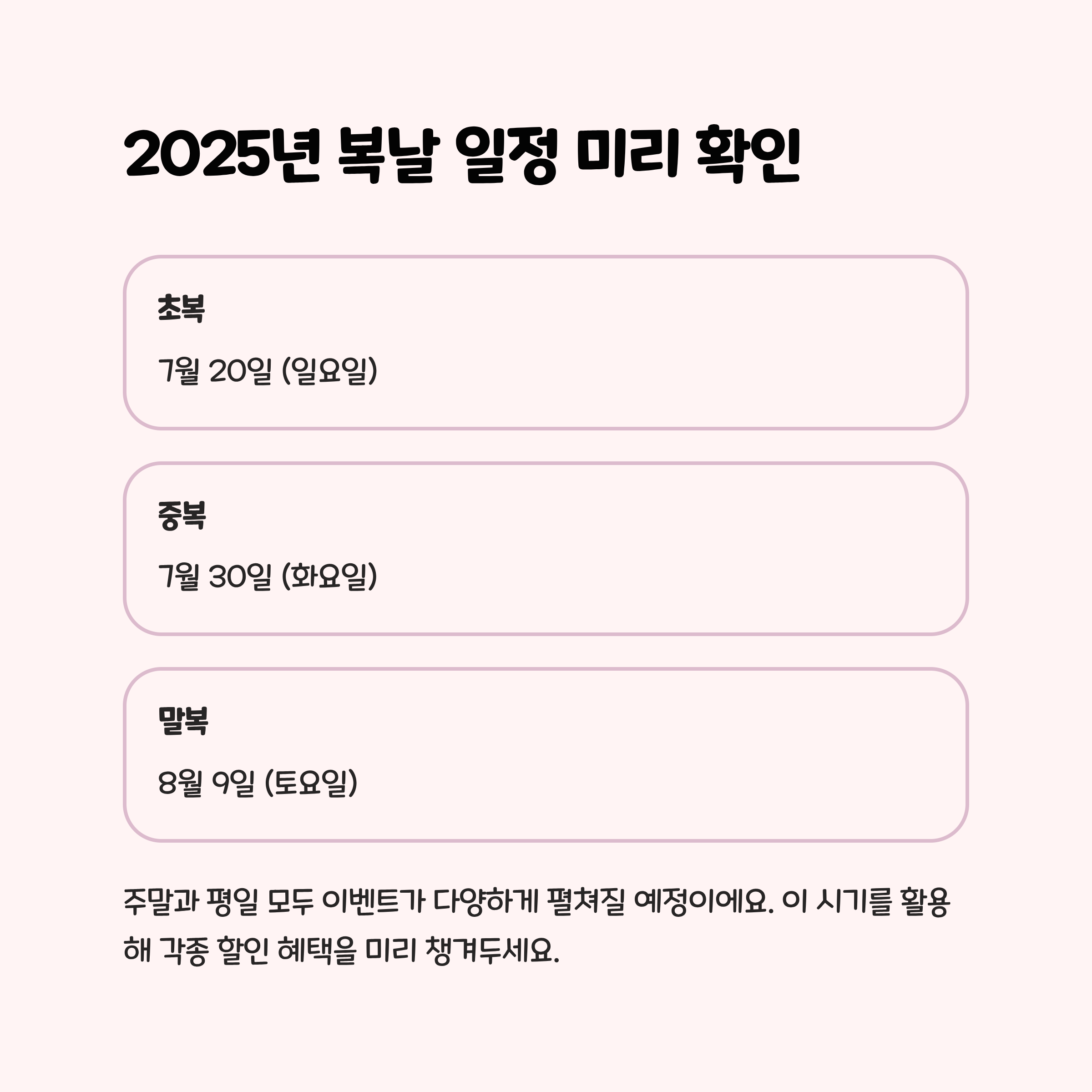 이번 글에서는 2025년 복날 일정부터 주요 브랜드의 할인 정보,