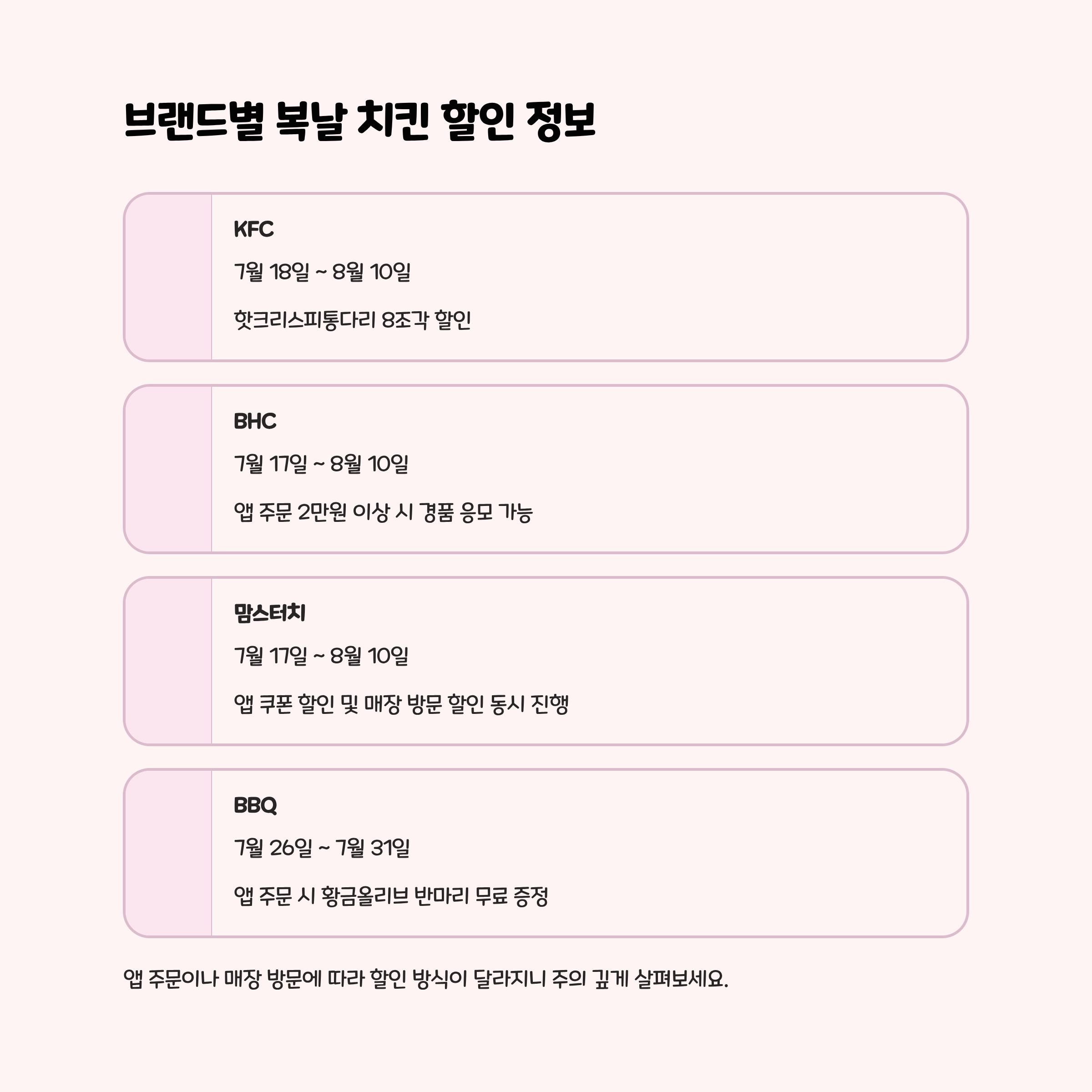 2025년 복날을 맞아 치킨 브랜드들이 다양한 할인 혜택을 쏟아내고 있어