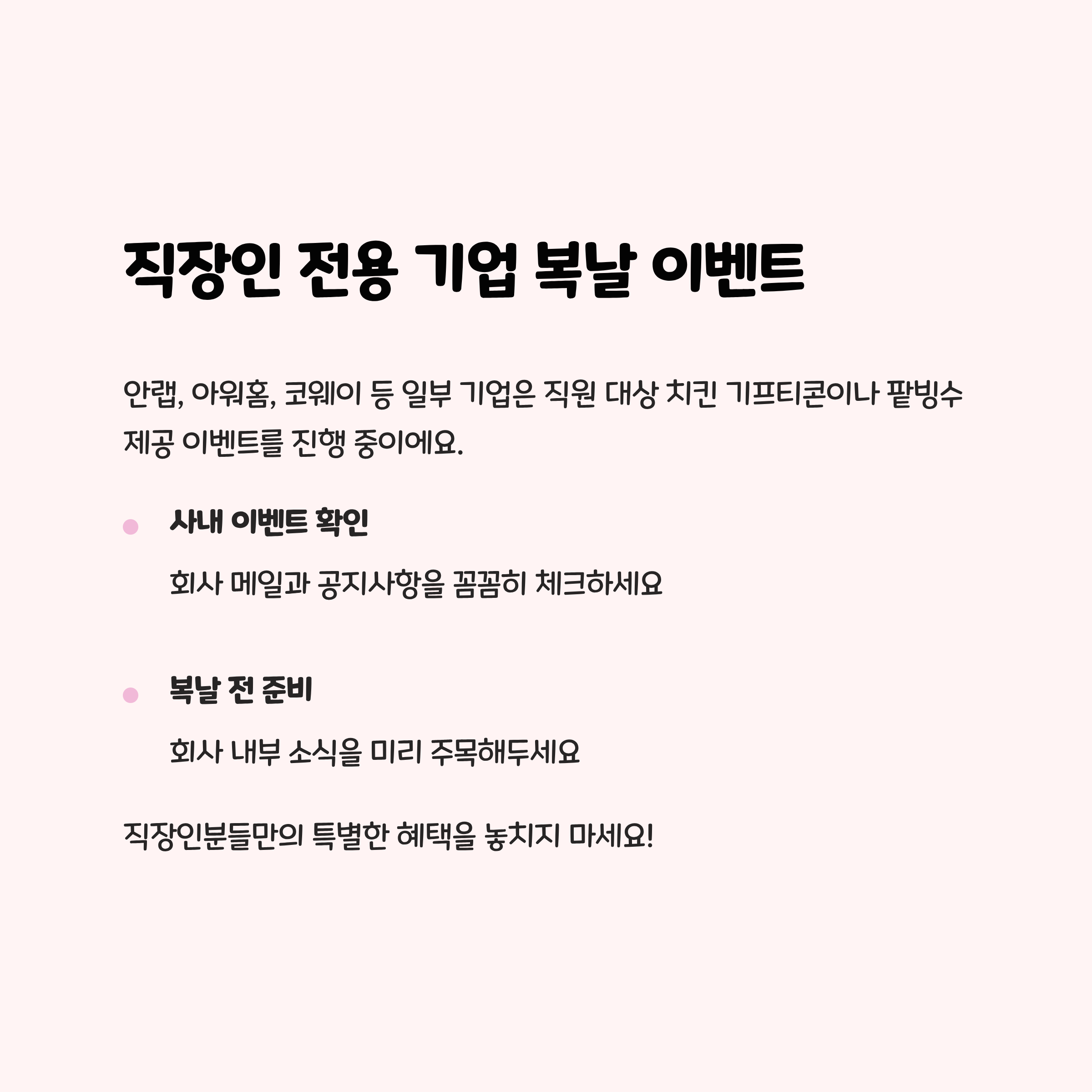 직장인을 위한 기업 복날 이벤트도 놓치지 마세요