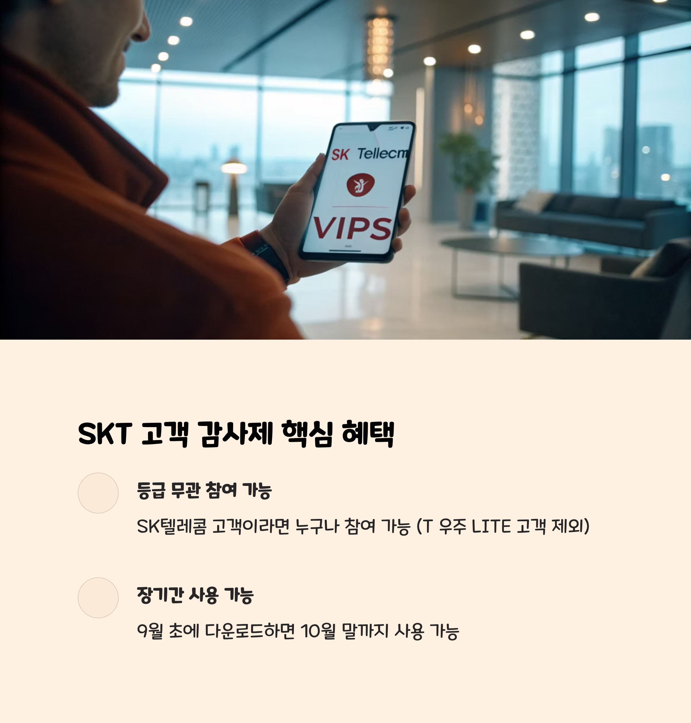 이번 이벤트는 SK텔레콤 고객이라면 누구나 등급에 상관없이 참여할 수 있습니다. 단, T 우주 LITE 고객은 제외되니 유의하세요.