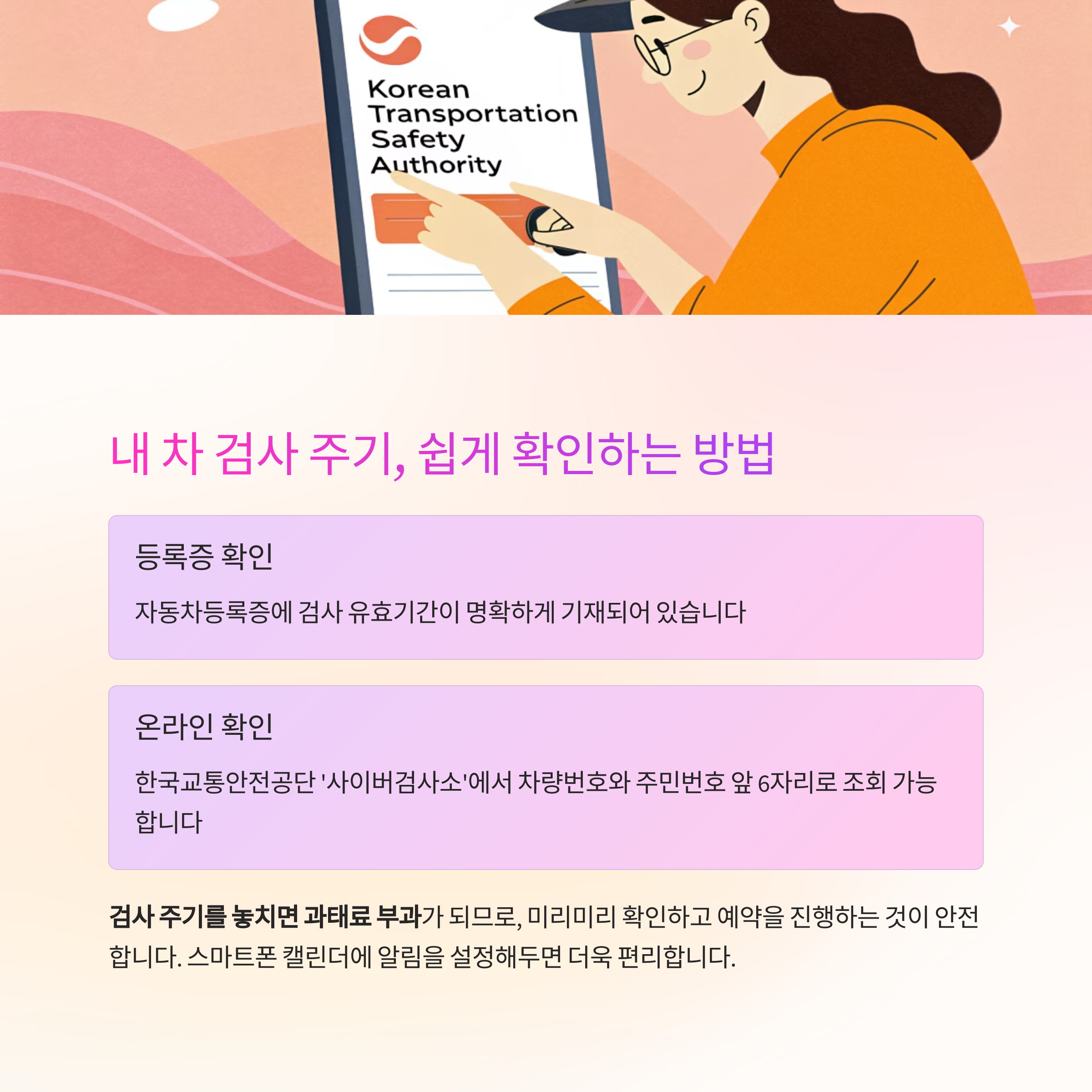 자동차 검사 주기부터 과태료, 예약 방법까지 모두 정리했으니 꼭 확인해보세요.
