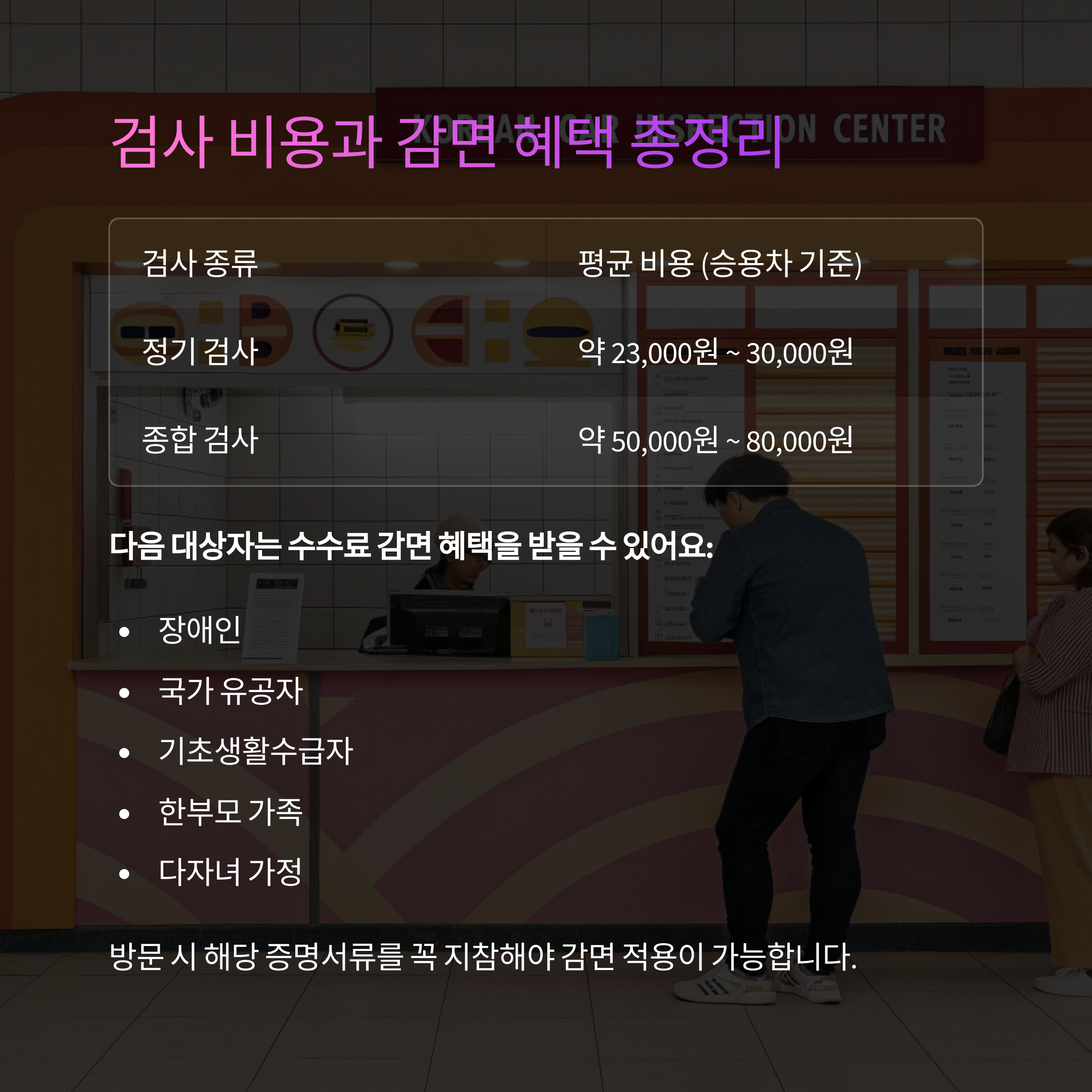 방문 시 해당 증명서류를 꼭 지참해야 감면 적용이 가능합니다.
