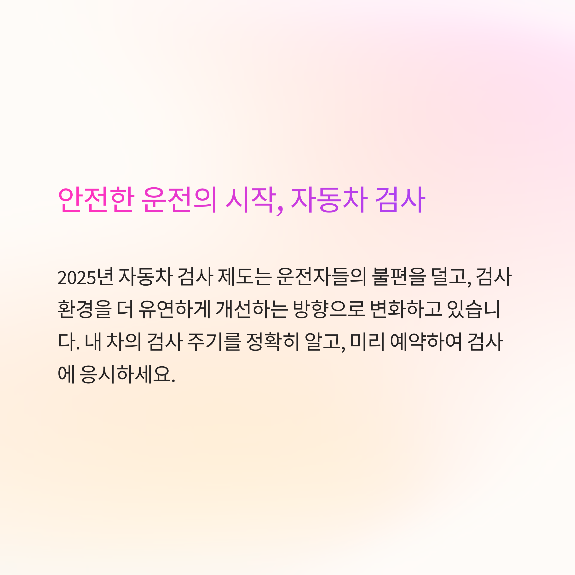 2025년부터는 검사 제도가 개선되어 더 편리하게, 더 여유롭게 자동차 검사를 받을 수 있게 되었습니다.
