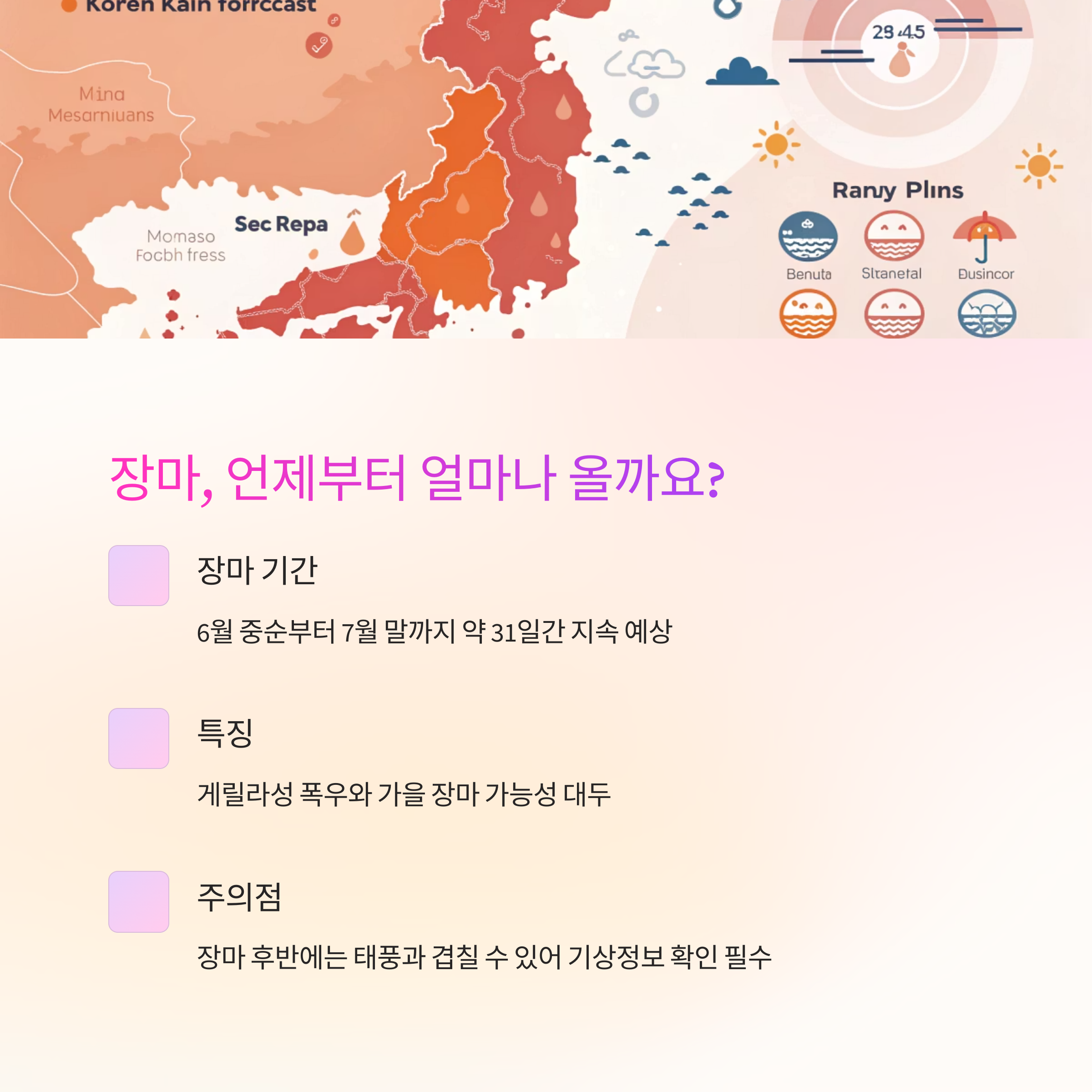 중요 포인트: 장마 후반에는 태풍과 겹칠 수 있으므로