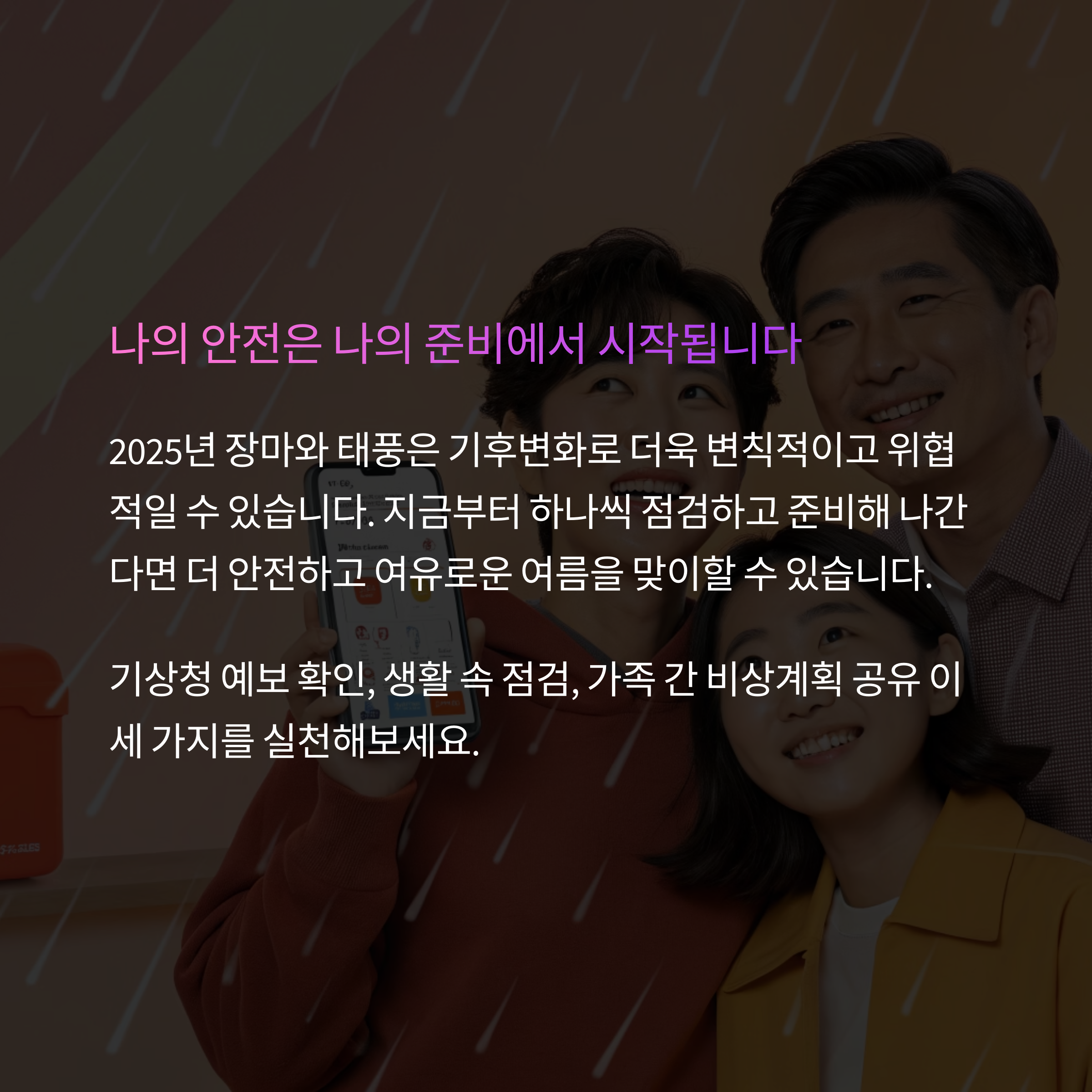 장마와 태풍은 순식간에 일상을 무너뜨릴 수 있어요