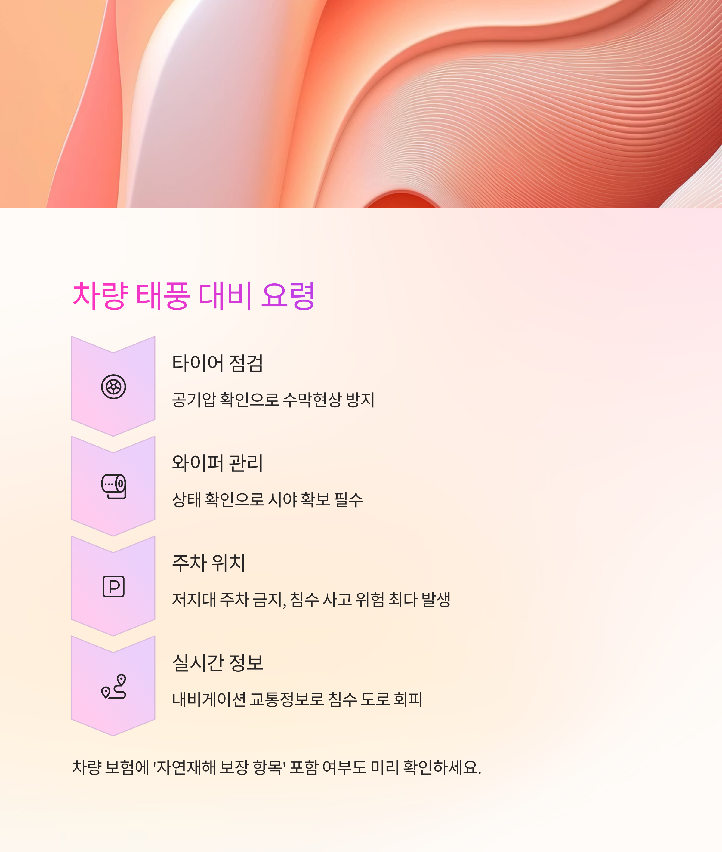 | 차량 관리 | 저지대 주차 금지, 와이퍼·타이어 점검 |