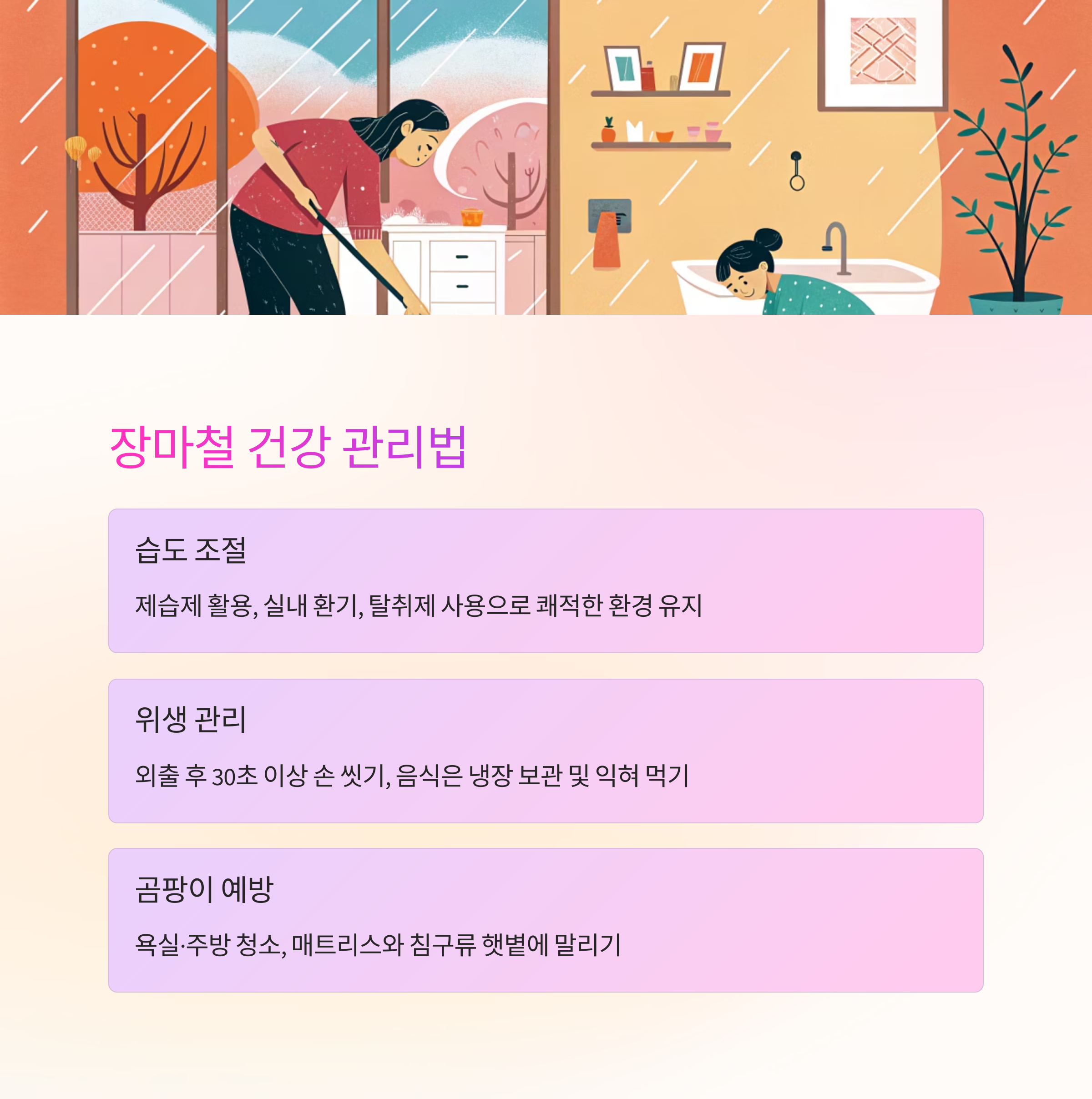 | 건강관리 | 제습, 환기, 음식 위생 철저 |