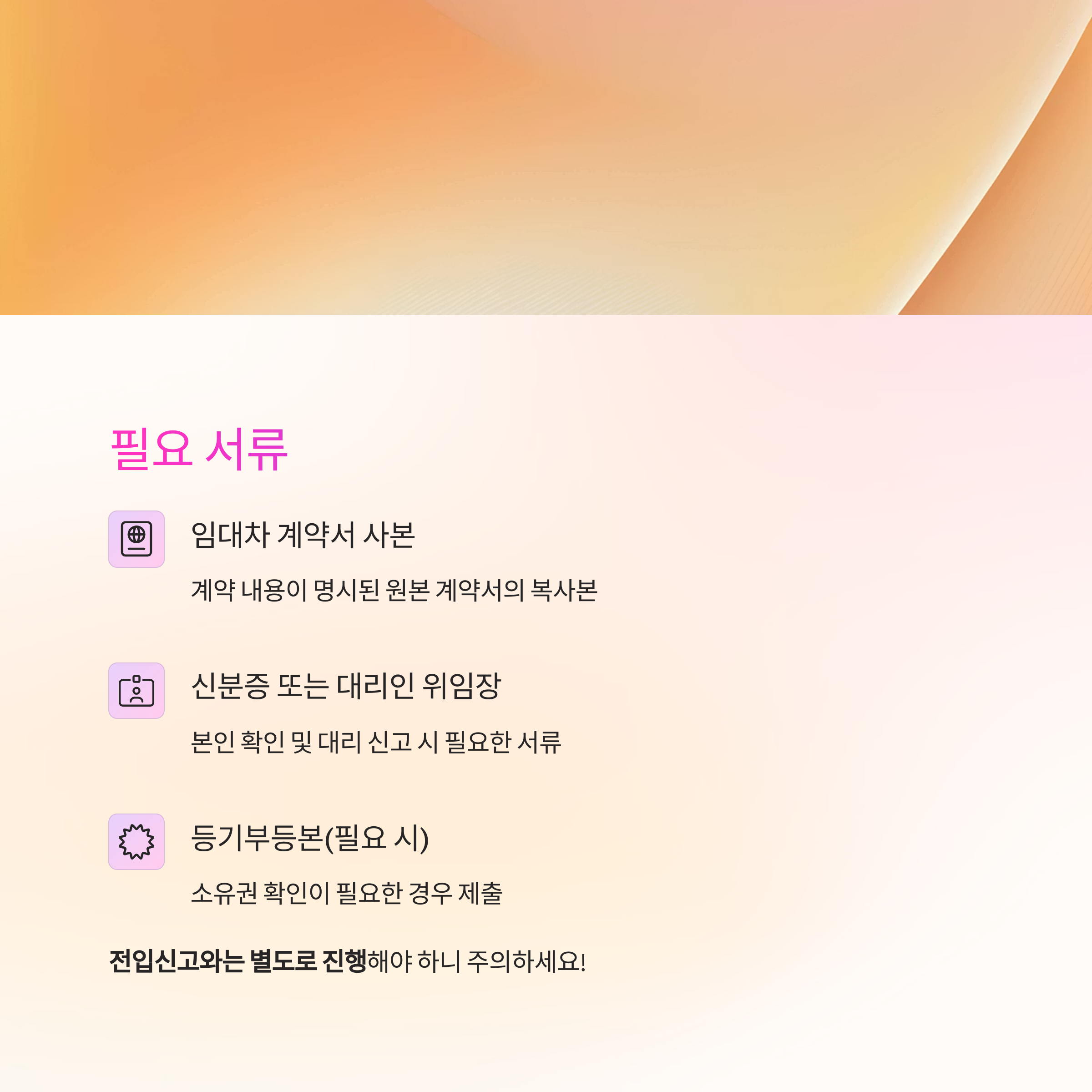 단순 전입신고로는 전월세 신고가 자동 처리되지 않으므로, 반드시 별도로 전월세 계약서를 첨부해야 합니다.