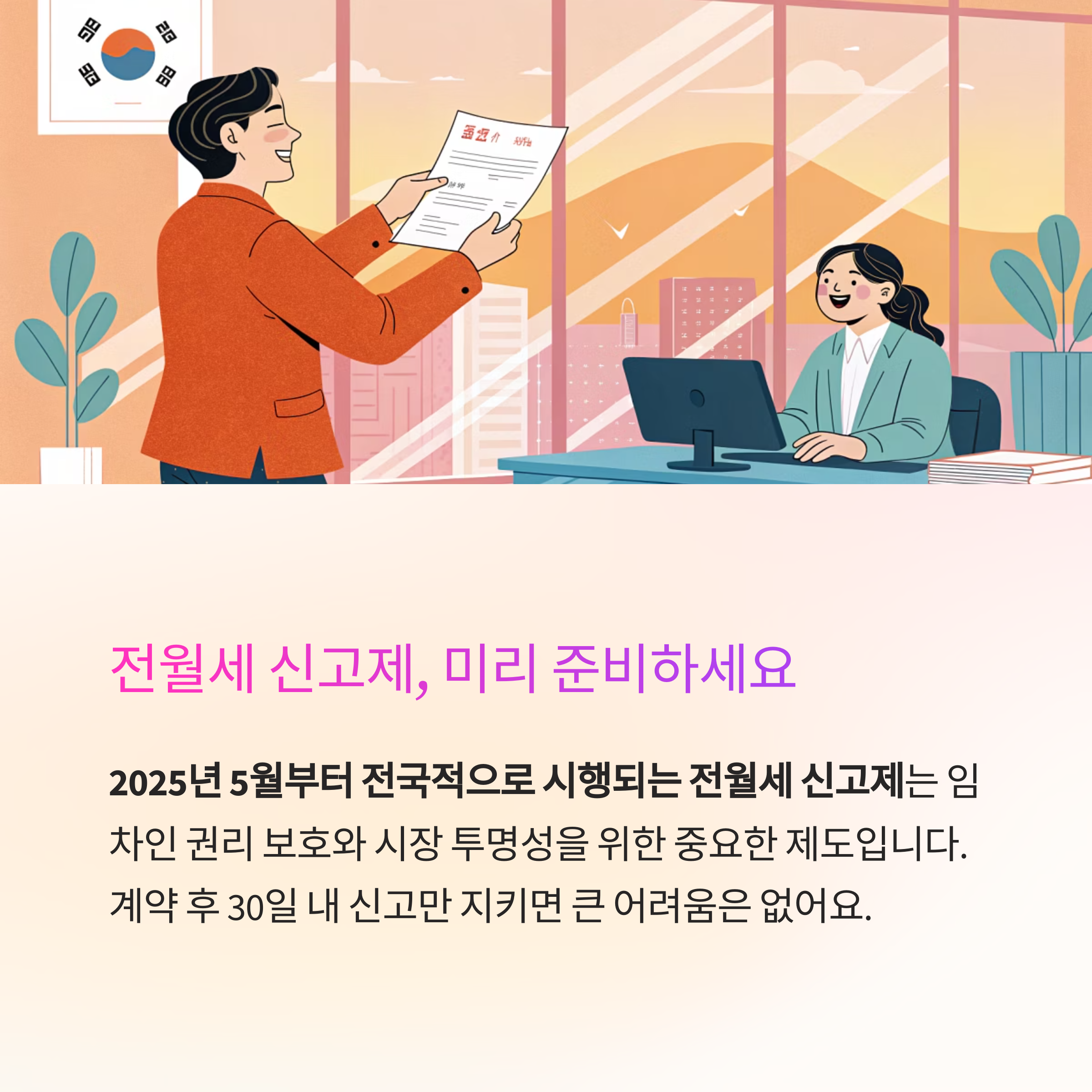 안전하고 신뢰할 수 있는 전월세 거래를 위해, 전월세 신고제 지금부터 꼼꼼히 준비해보세요.