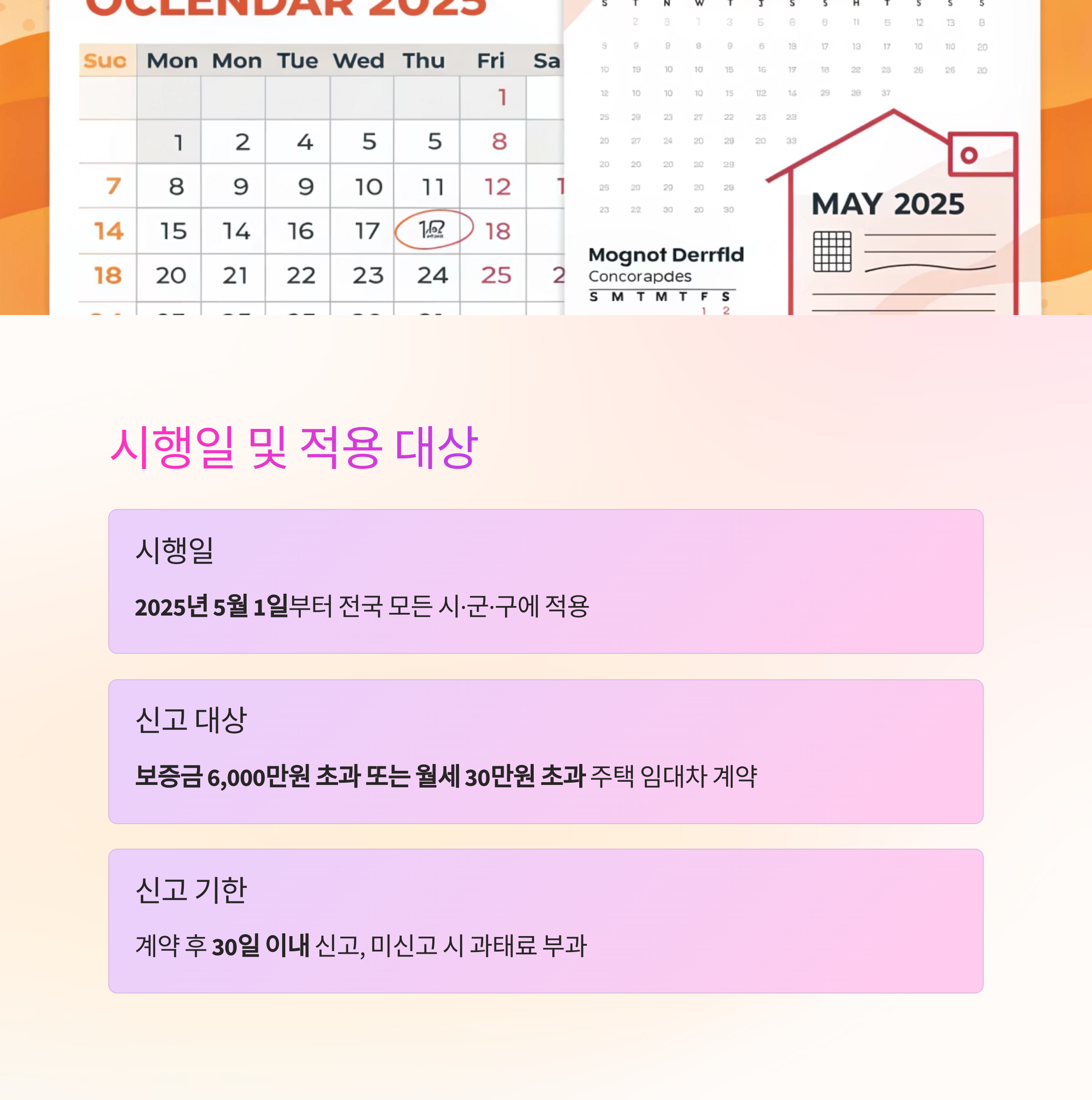 | 신고 대상 | 보증금 6,000만 원 초과 또는 월세 30만 원 초과 주택 임대차 계약 |