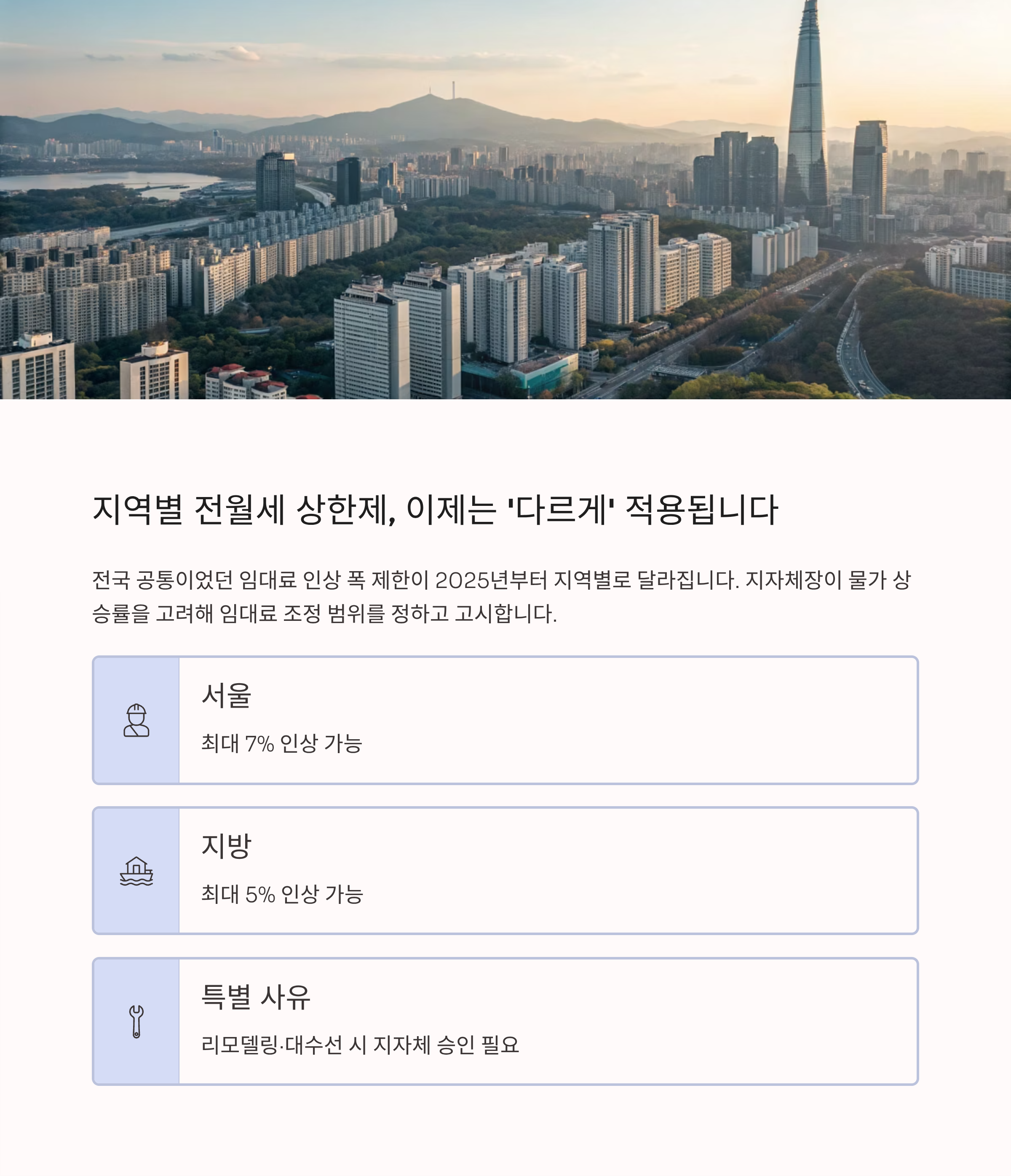 예를 들어 서울은 최대 7%, 지방은 5% 등 지역 특성에 맞는 유연한 인상률 조정이 가능해집니다.