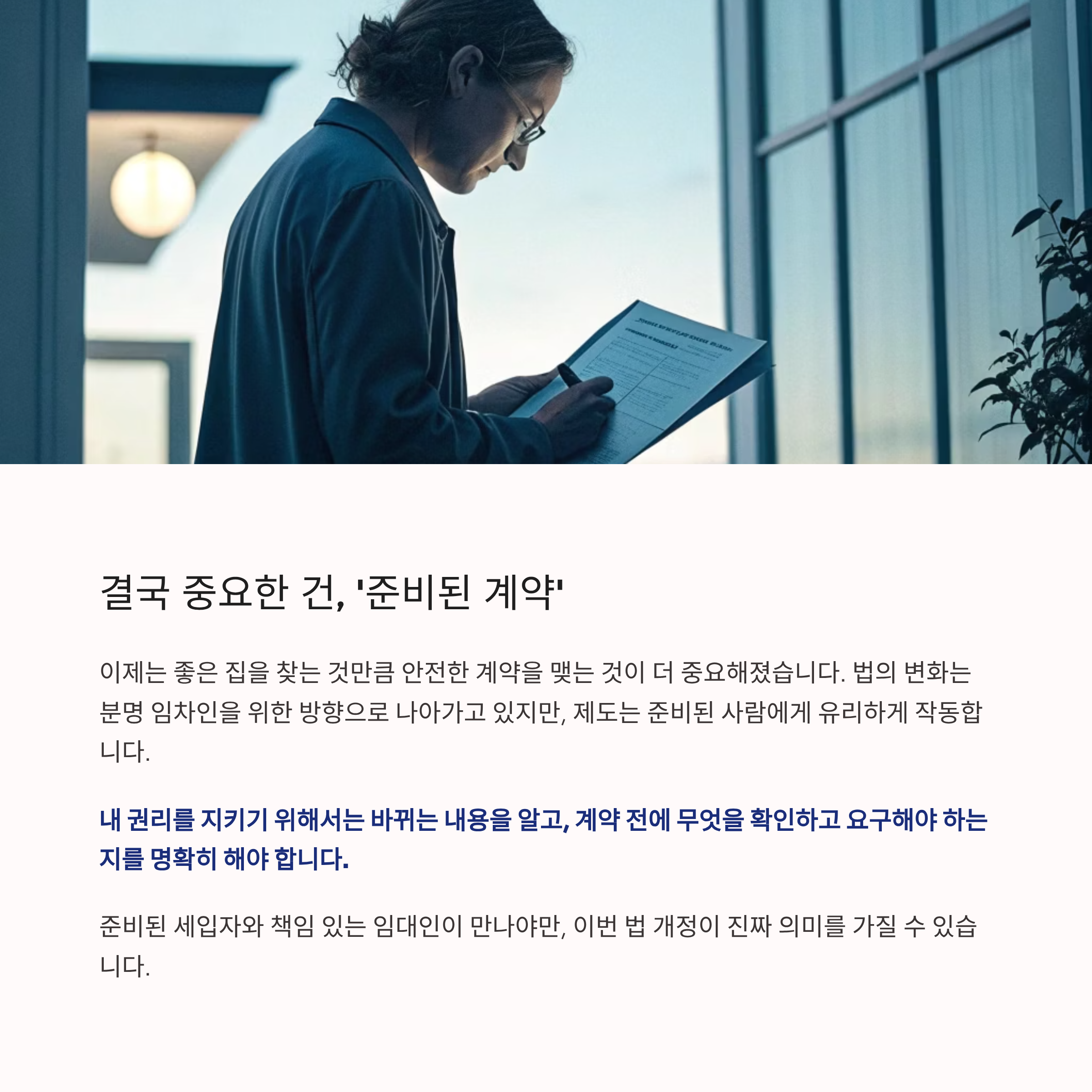 준비된 세입자와 책임 있는 임대인이 만나야만, 이번 법 개정이 진짜 의미를 가질 수 있을 겁니다.