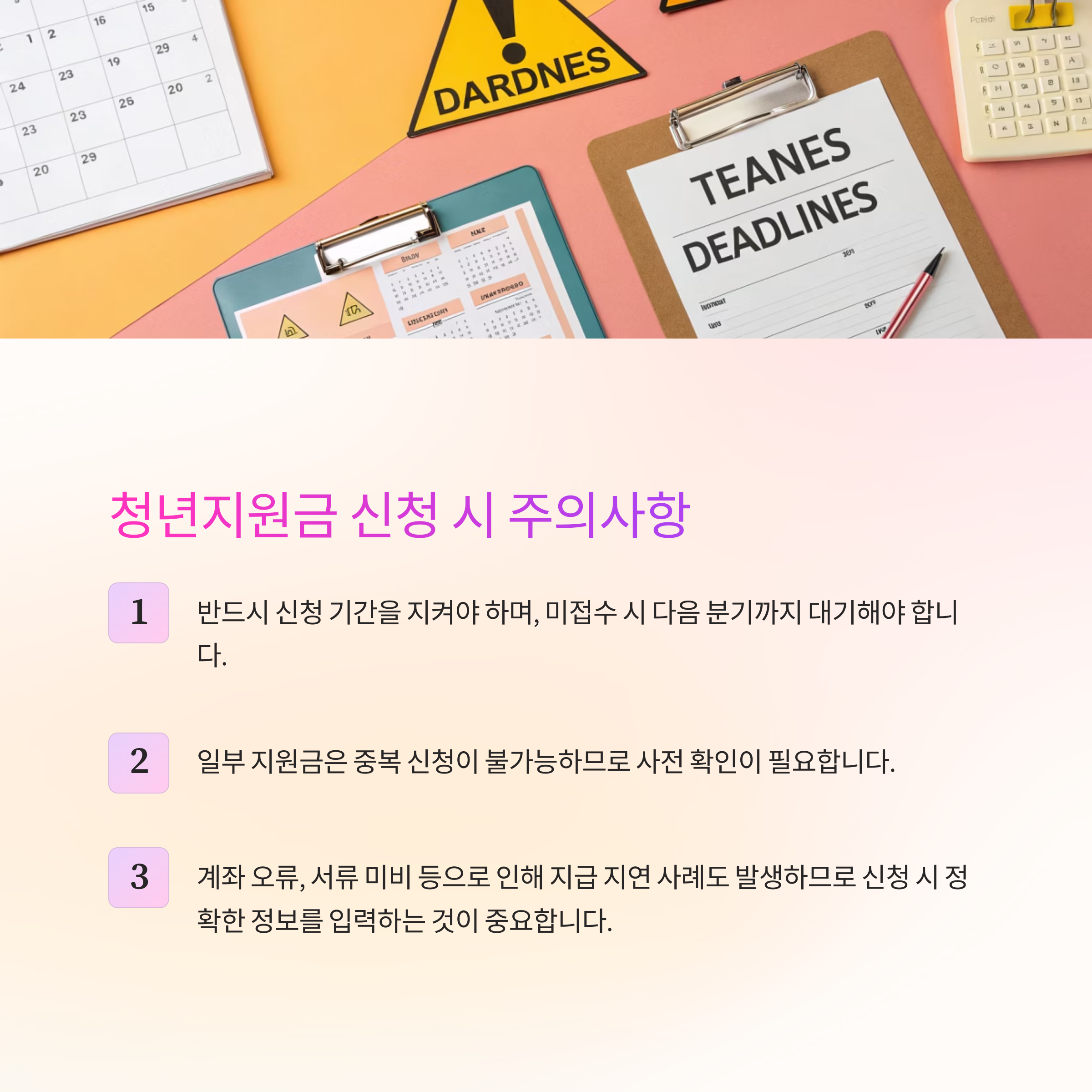 - 일부 지원금은 중복 신청이 불가능하므로 사전 확인이 필요합니다.