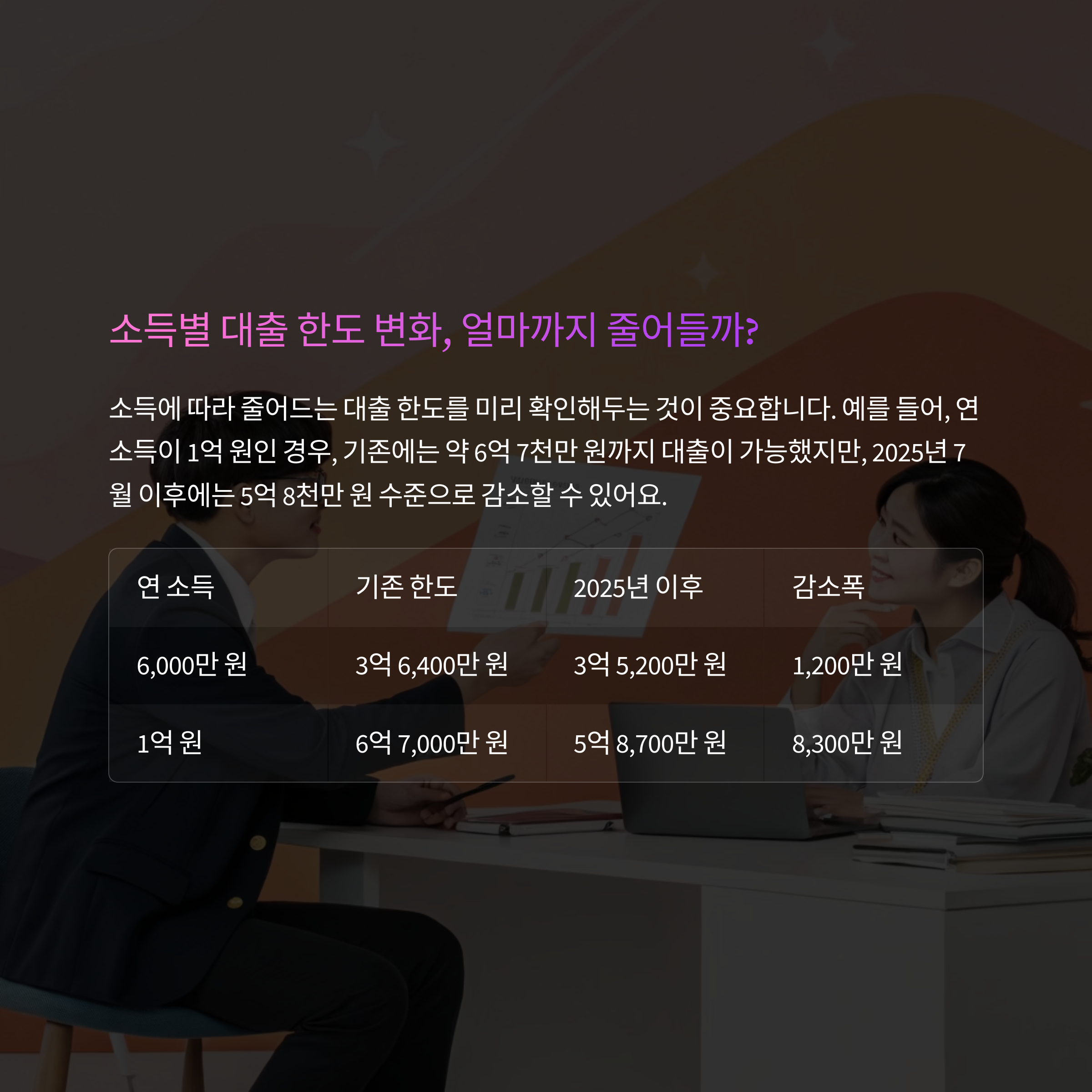 | 연 소득 | 기존 한도 | 2025년 이후 | 감소폭 |