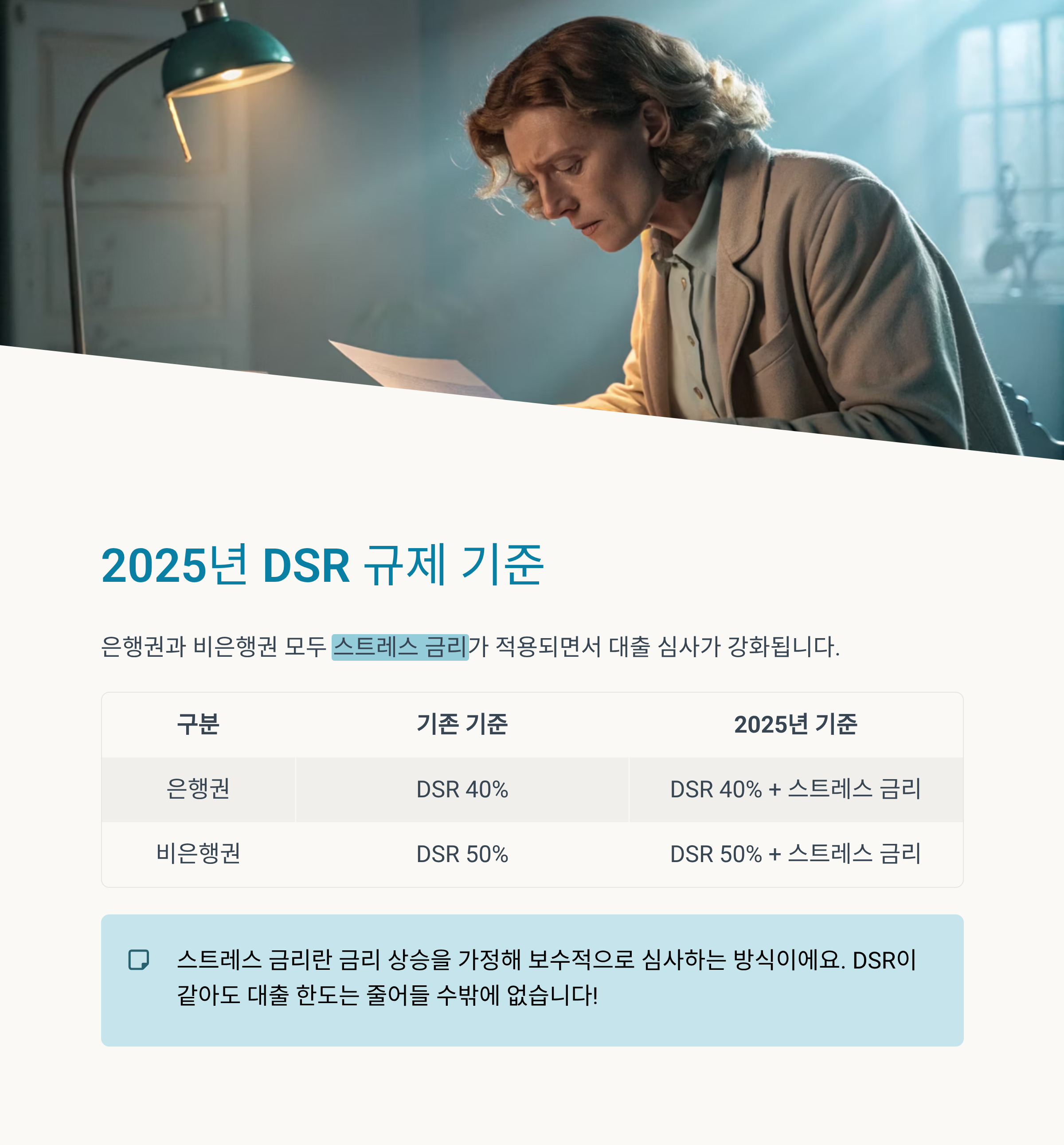 | 비은행권 | DSR 50% 이하 | DSR 50% + 스트레스 금리 적용 |