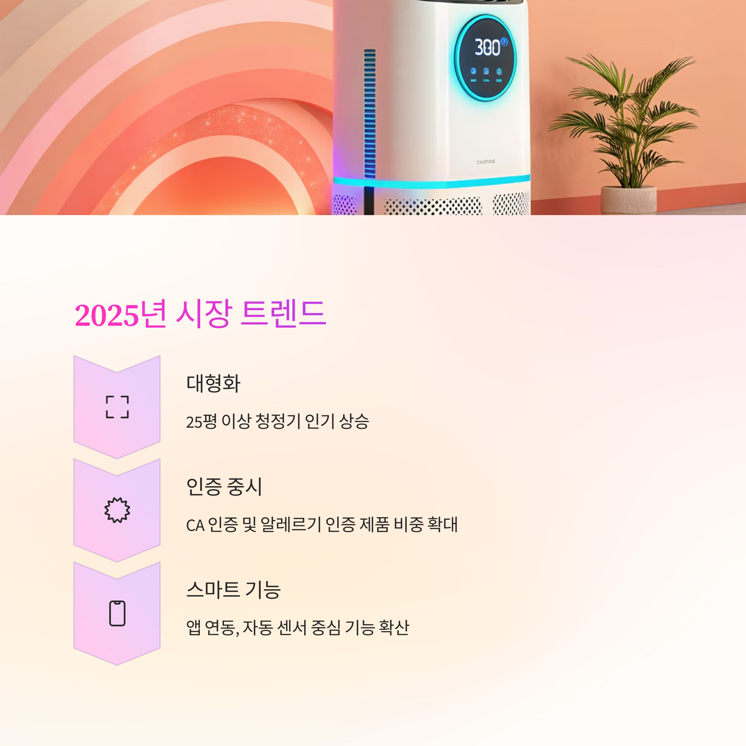 - 중대형 제품 수요 증가 (25평 이상 청정기 인기)