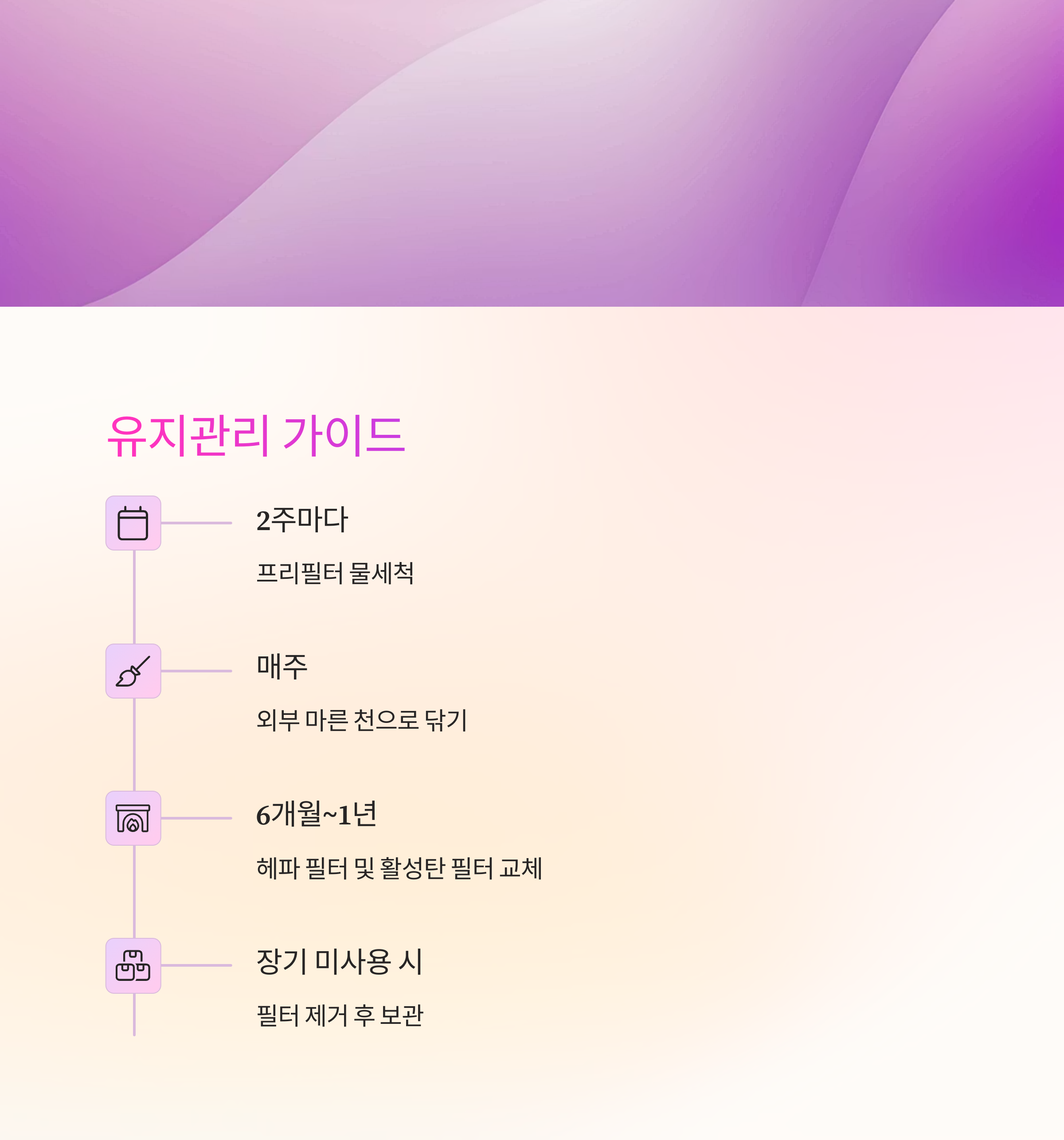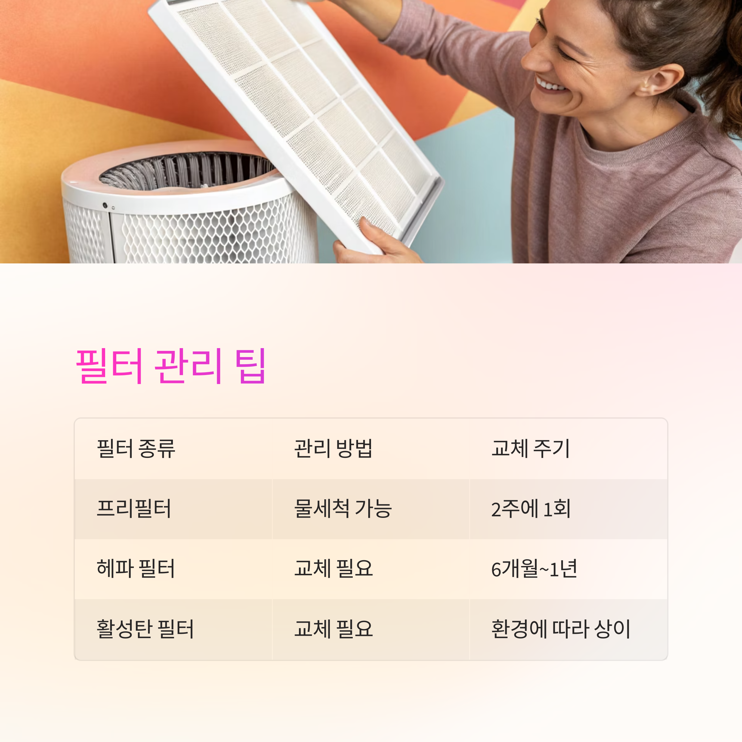 공기청정기 성능을 오래 유지하려면 청소 주기와 관리법이 중요합니다.
