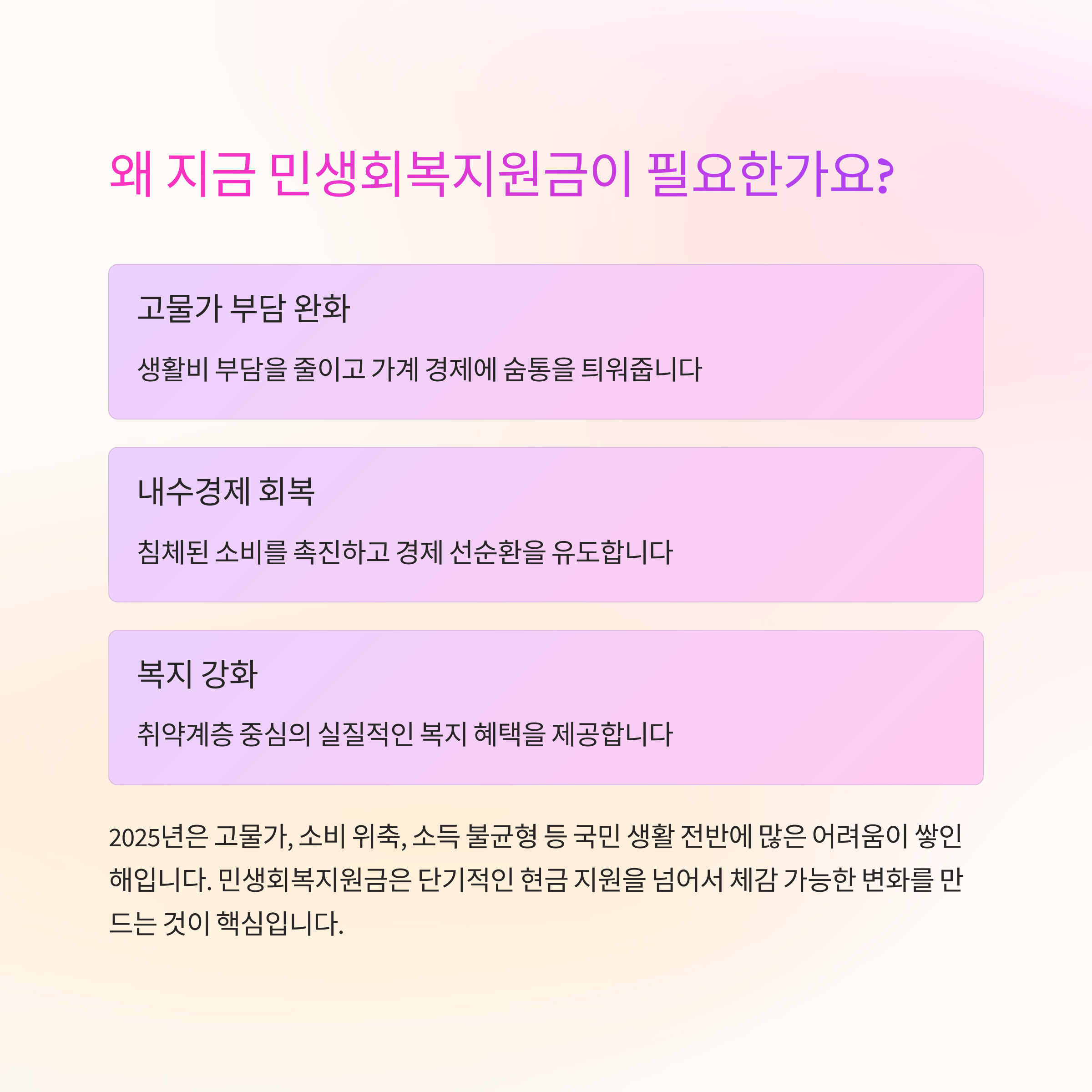 이번 지원금은 단기적인 생활비 보조를 넘어서