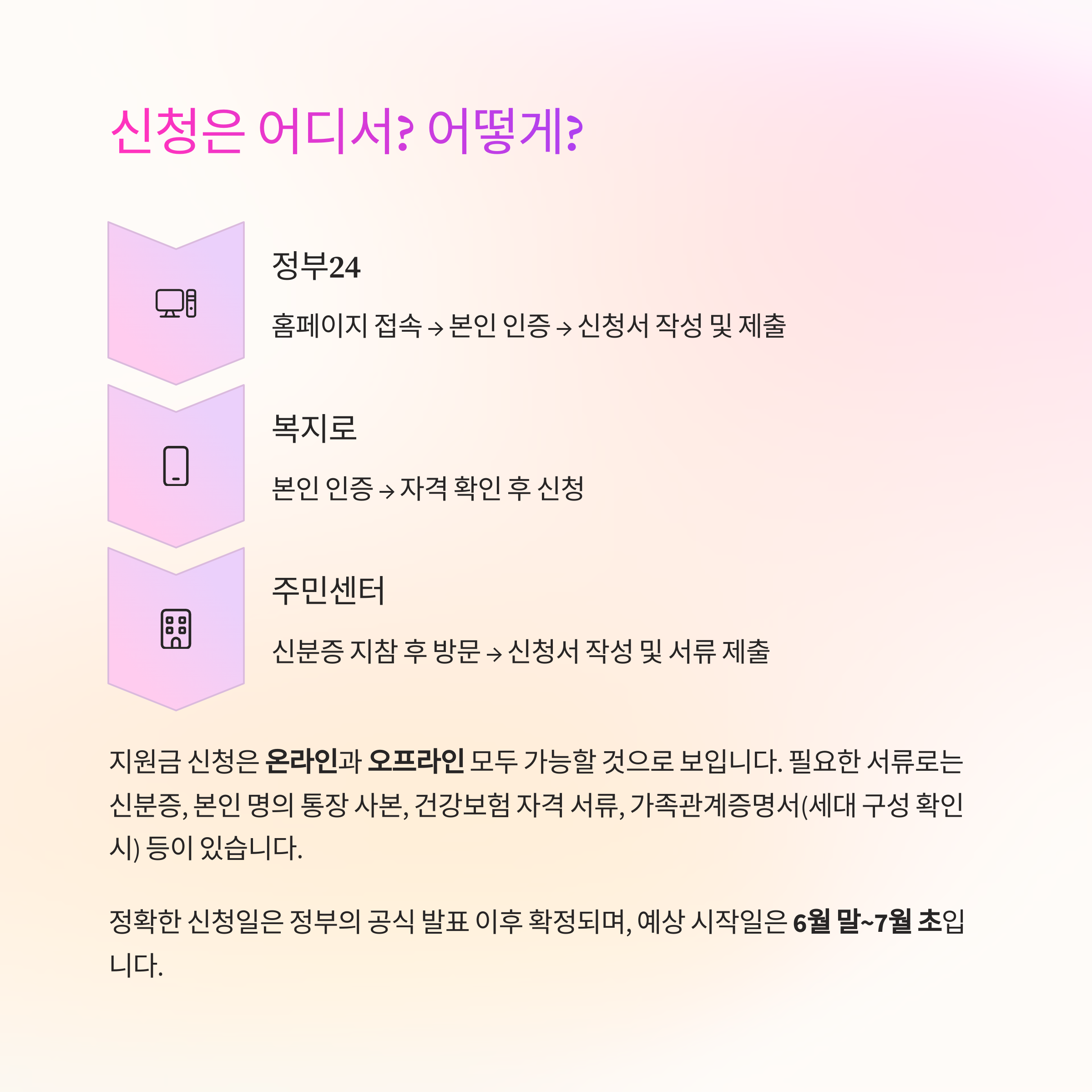 지원금 신청은 온라인과 오프라인 모두 가능할 것으로 보입니다.