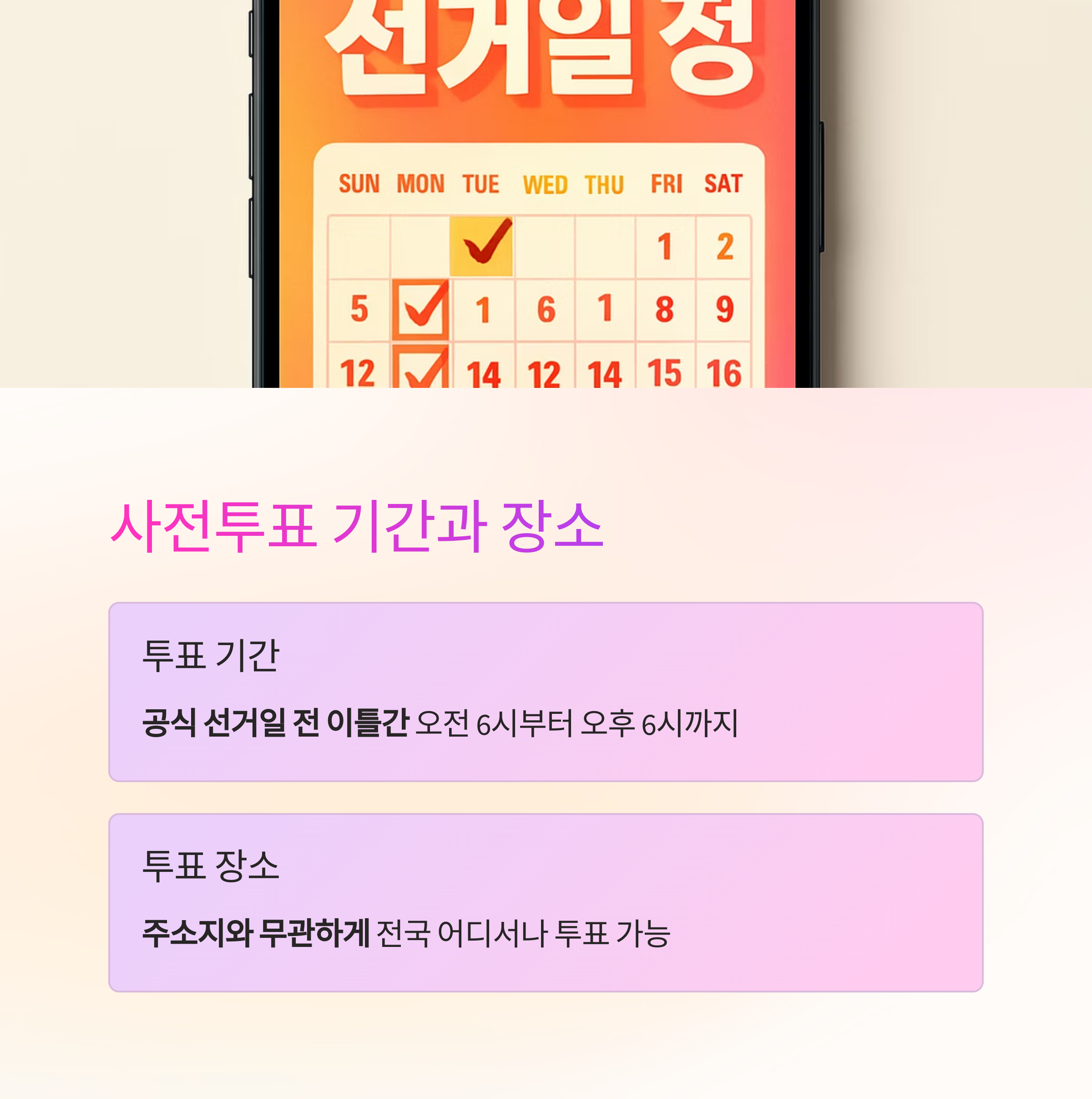 → 모바일 ‘선거정보’ 앱에서 현재 위치 기반으로 가장 가까운 투표소를 찾아보세요.
