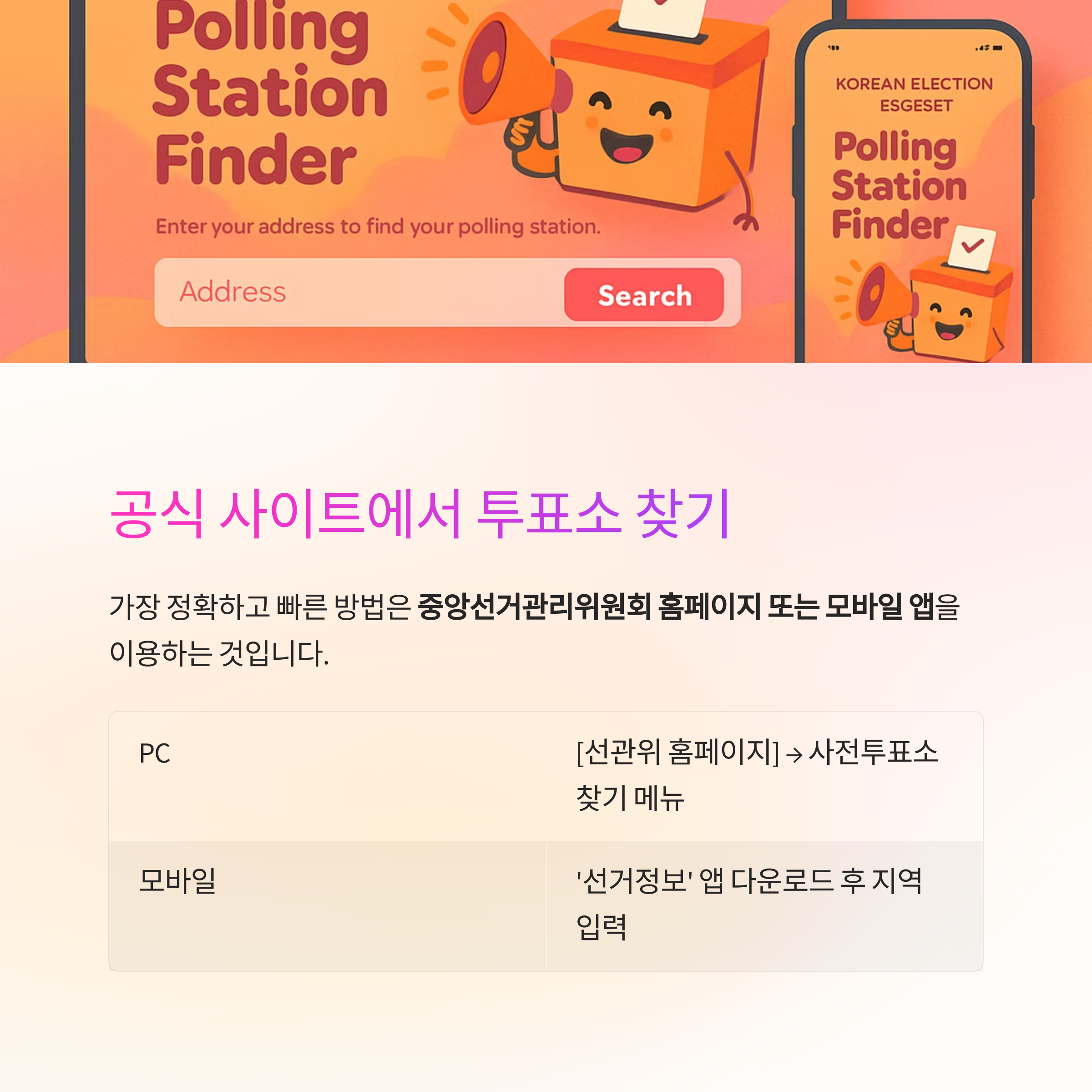 공식 사이트에서 사전투표소 찾기 (모바일·PC 모두 가능)