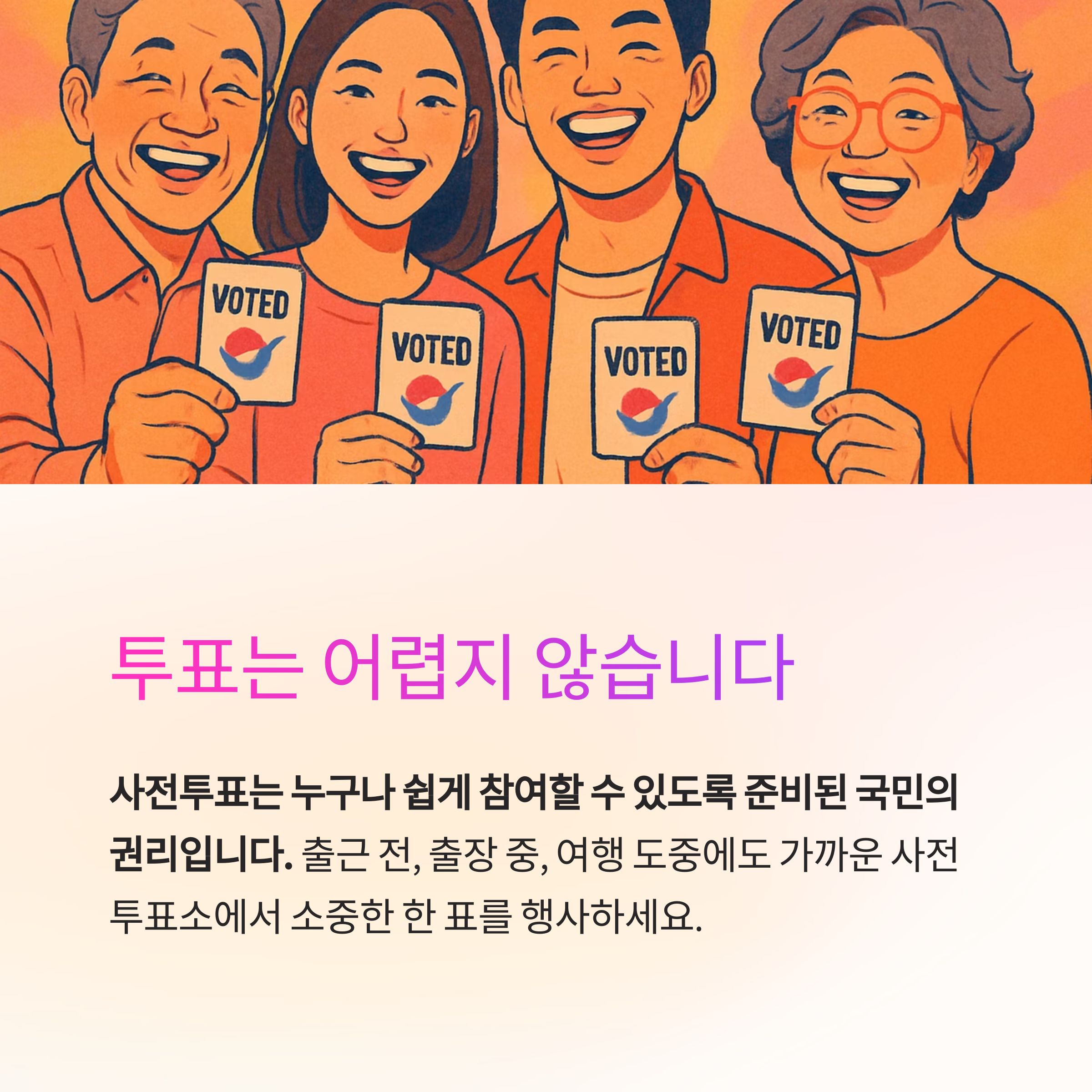 여러분도 이번 선거는 사전투표로 더 똑똑하게 참여해보세요.
