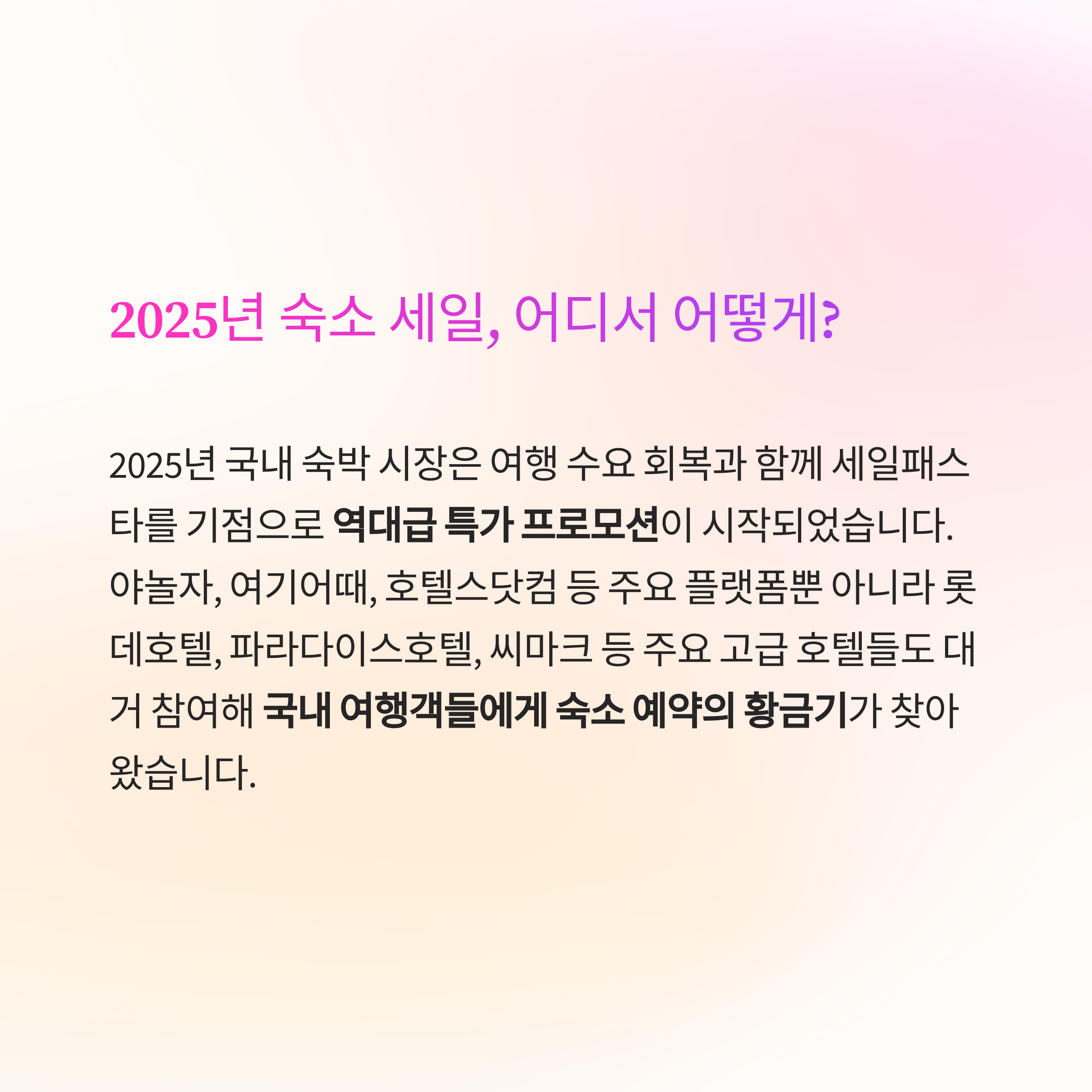 2025년 국내 숙박 시장은 여행 수요 회복과 함께 세일패스타를 기점으로
